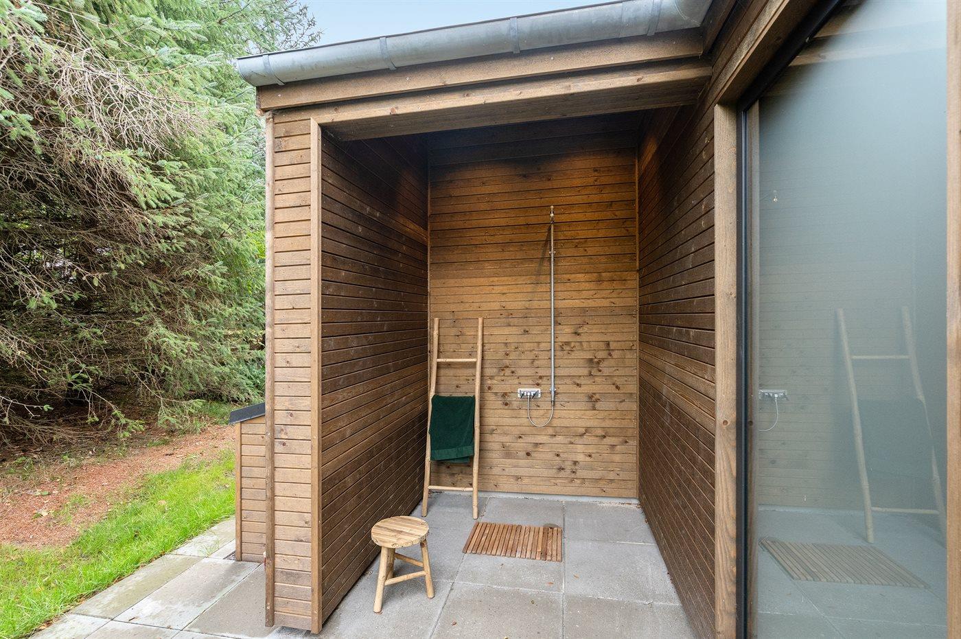 Ferieboligen er beliggende på en 1285 m² stor naturgrund. Der er 400 m til havet. Nærmeste forretning er beliggende i en afstand af 2500 m. Til ferieboligen hører 35 m² terrasseareal. Desuden er der 15 m² overdækket terrasse. Udendørs bruser. Parkering ved ferieboligen.