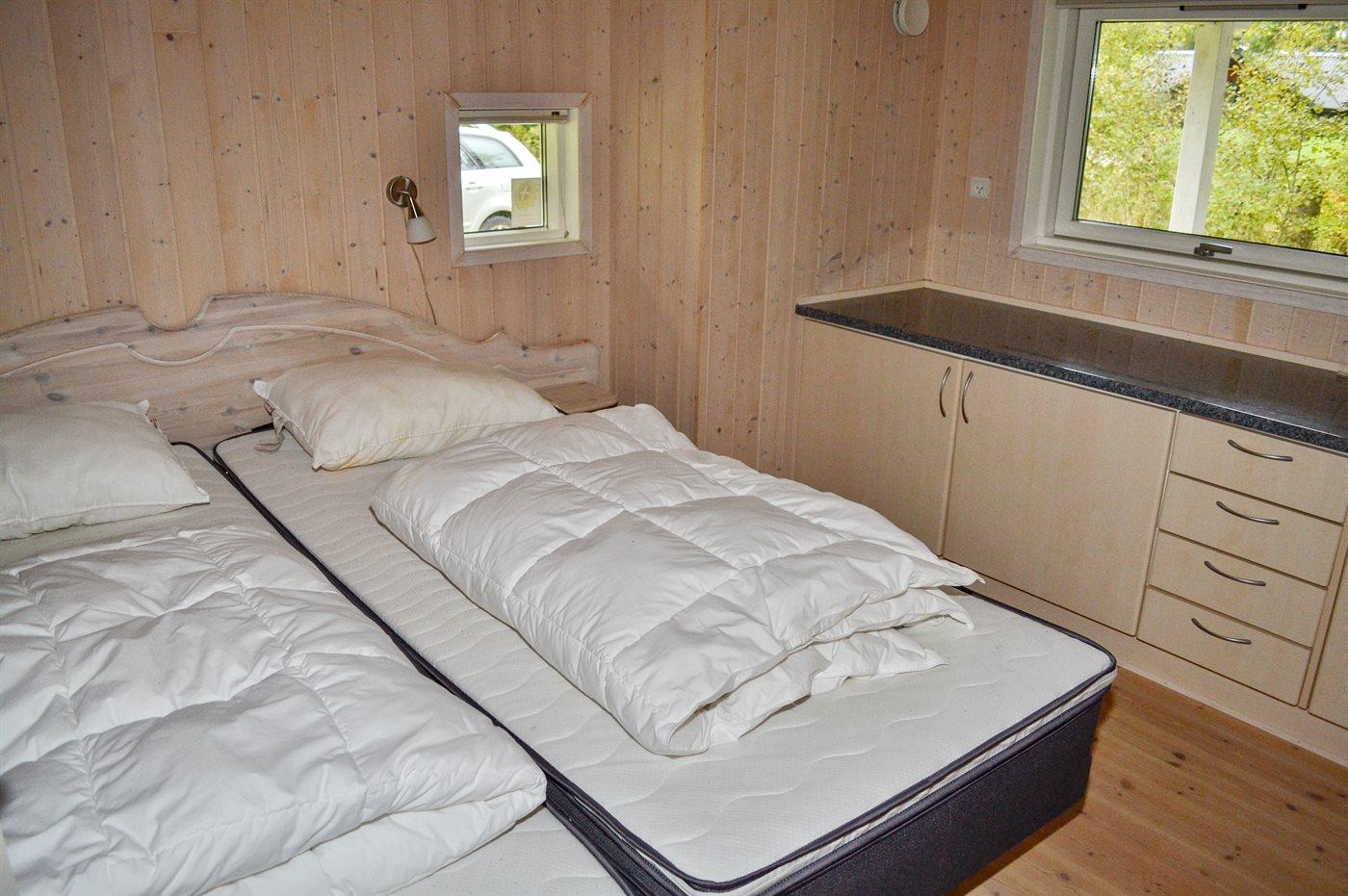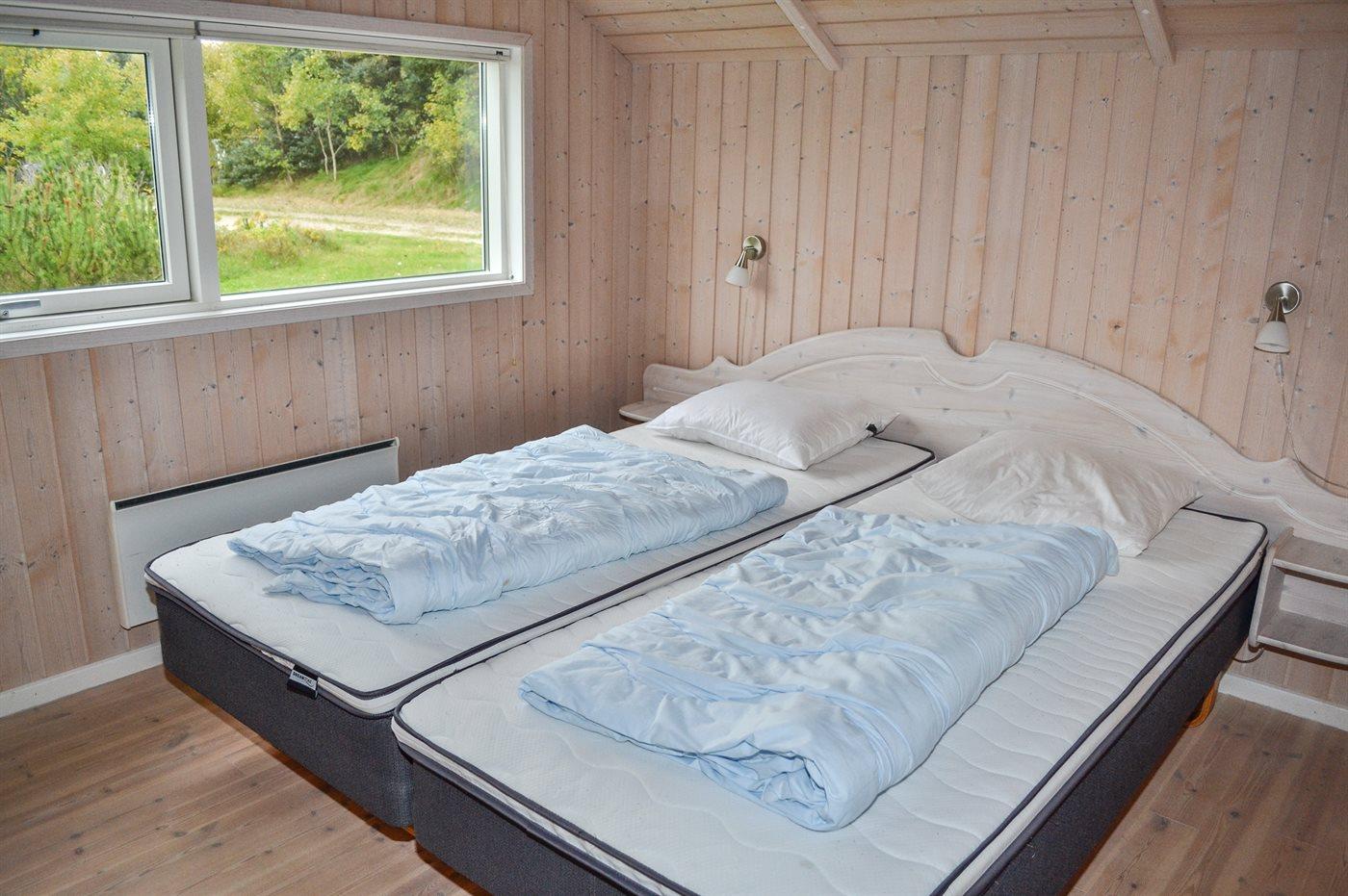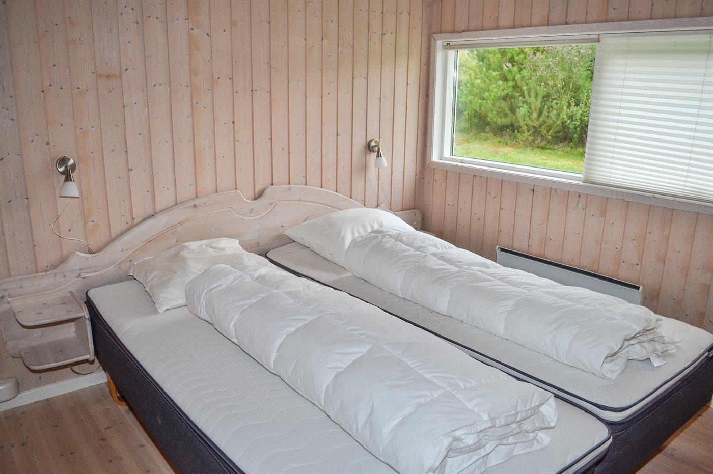 Der er i alt 4 soveværelser. Sovepladserne fordeler sig på: 6 sovepladser i dobbeltsenge. 2 sovepladser i enkeltsenge. Derudover er der 1 stk. barneseng.