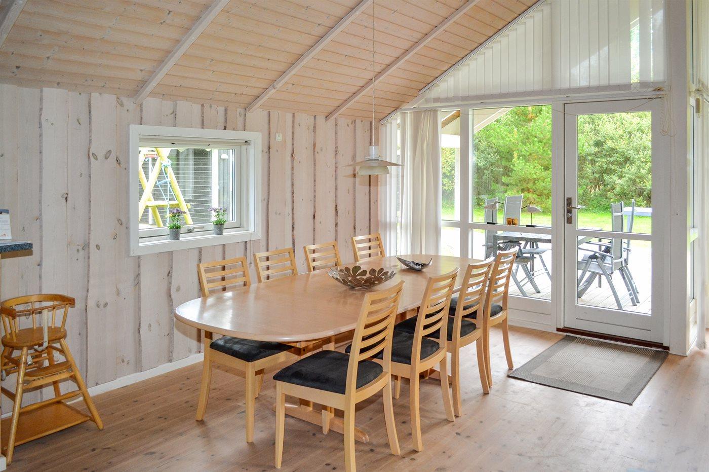 Sommerhuset egner sig til 8 personer. Ferieboligen er på 155 m² og er bygget i 2007. Det er tilladt at medbringe 2 husdyr. Ferieboligen har vaskemaskine. Tørretumbler. Frysekapacitet på 80 liter. Der er desuden brændeovn. Til de små er der 1 stk. barnestol.