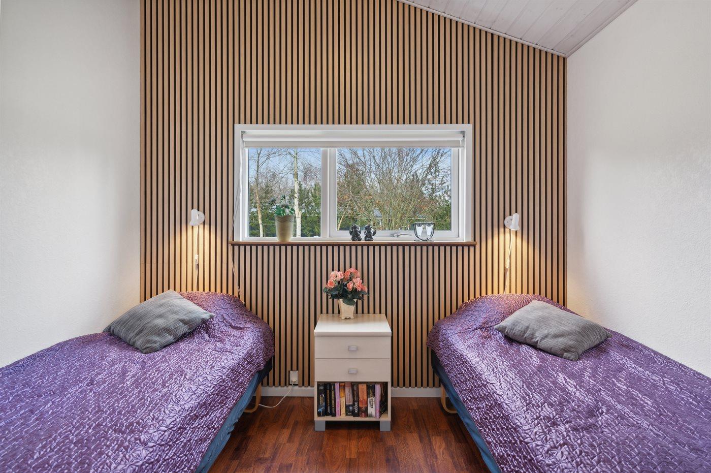 Der er i alt 3 soveværelser. Sovepladserne fordeler sig på: 4 sovepladser i dobbeltsenge. 2 sovepladser i enkeltsenge.