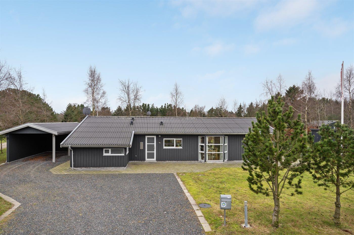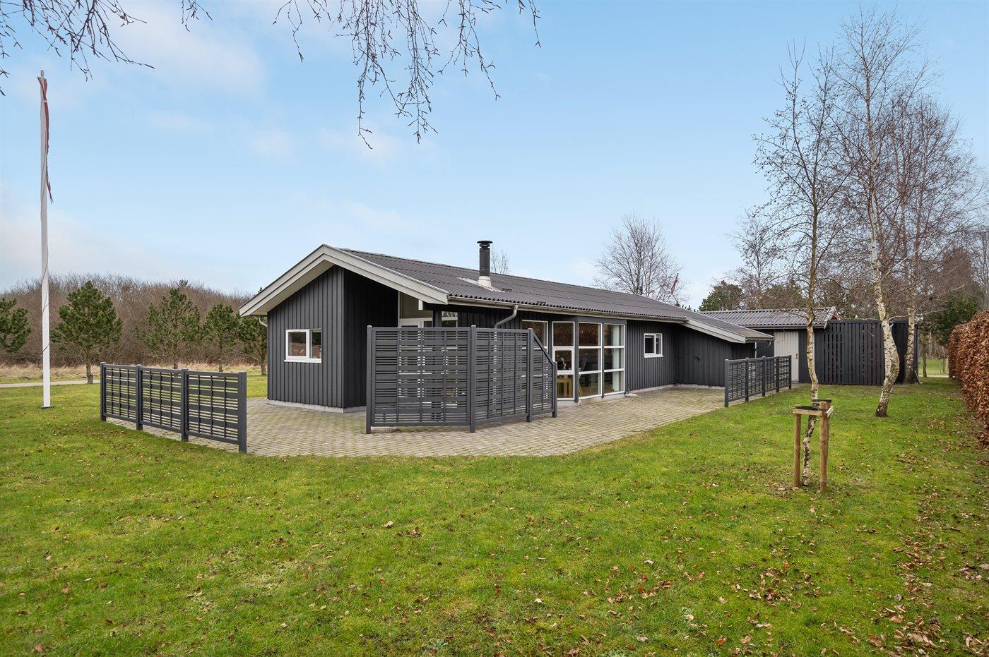 Ferieboligen er beliggende på en 1257 m² stor havegrund. Der er 1400 m til havet. Nærmeste forretning er beliggende i en afstand af 2000 m. Til ferieboligen hører 100 m² terrasseareal. Desuden er der 6 m² overdækket terrasse. Der er redskabsrum. Grill til rådighed. Der er installeret stik til opladning af elbil. Kabel til elbil skal medbringes. Parkering ved ferieboligen.