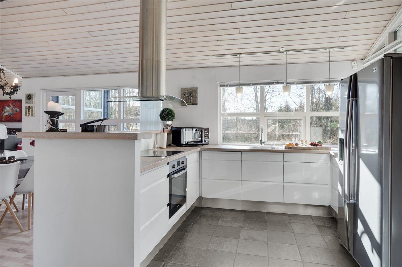 Køkkenet er udstyret med 1 køleskabKøkkenet er udstyret med 1 amerikansk køleskab. Der er 4 induktionskogeplader, varmluftovn, mikrobølgeovn samt opvaskemaskine.
