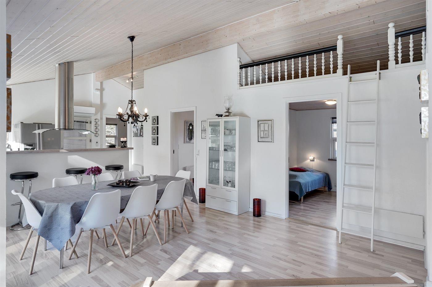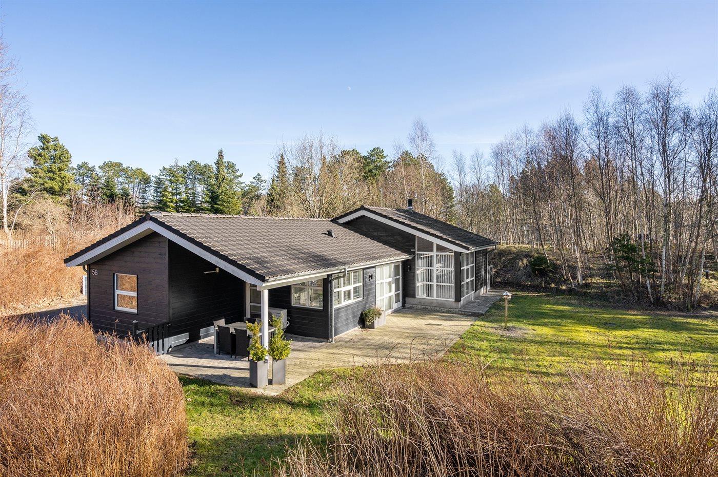 Sommerhuset egner sig til 6 personer. 2 af sovepladserne er kun egnet til større børn (4-11 år). Ferieboligen er på 119 m² og er bygget i 2006. Det er tilladt at medbringe 2 husdyr. Ferieboligen er udstyret med energibesparende varmepumpe. Ferieboligen har vaskemaskine. Tørretumbler. Frysekapacitet på 60 liter. Der er desuden brændeovn. Til de små er der 2 stk. barnestole.