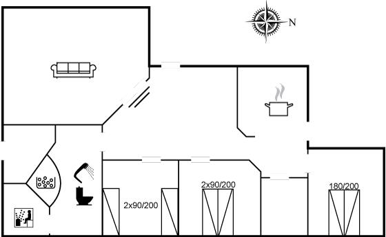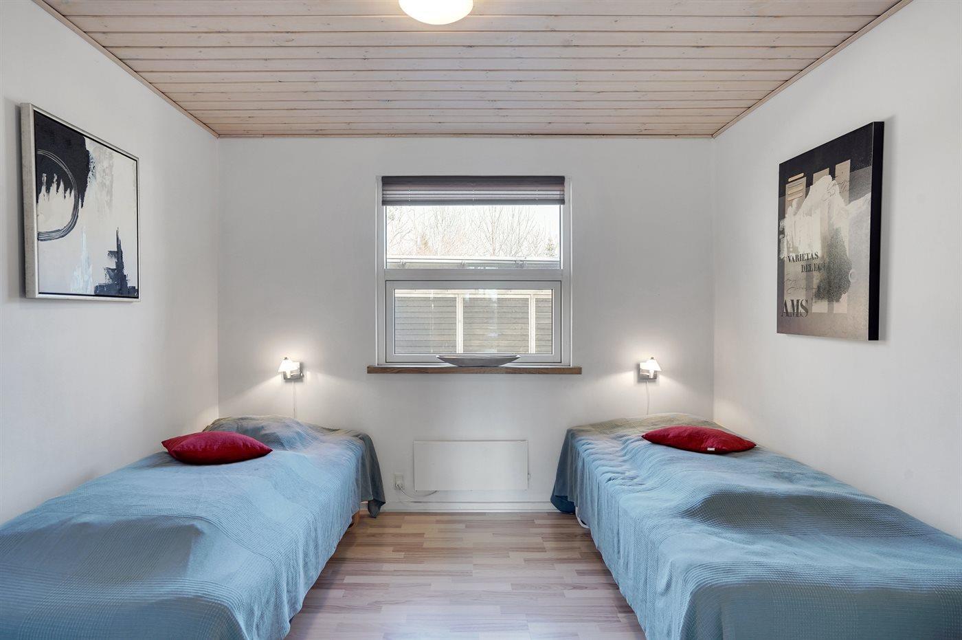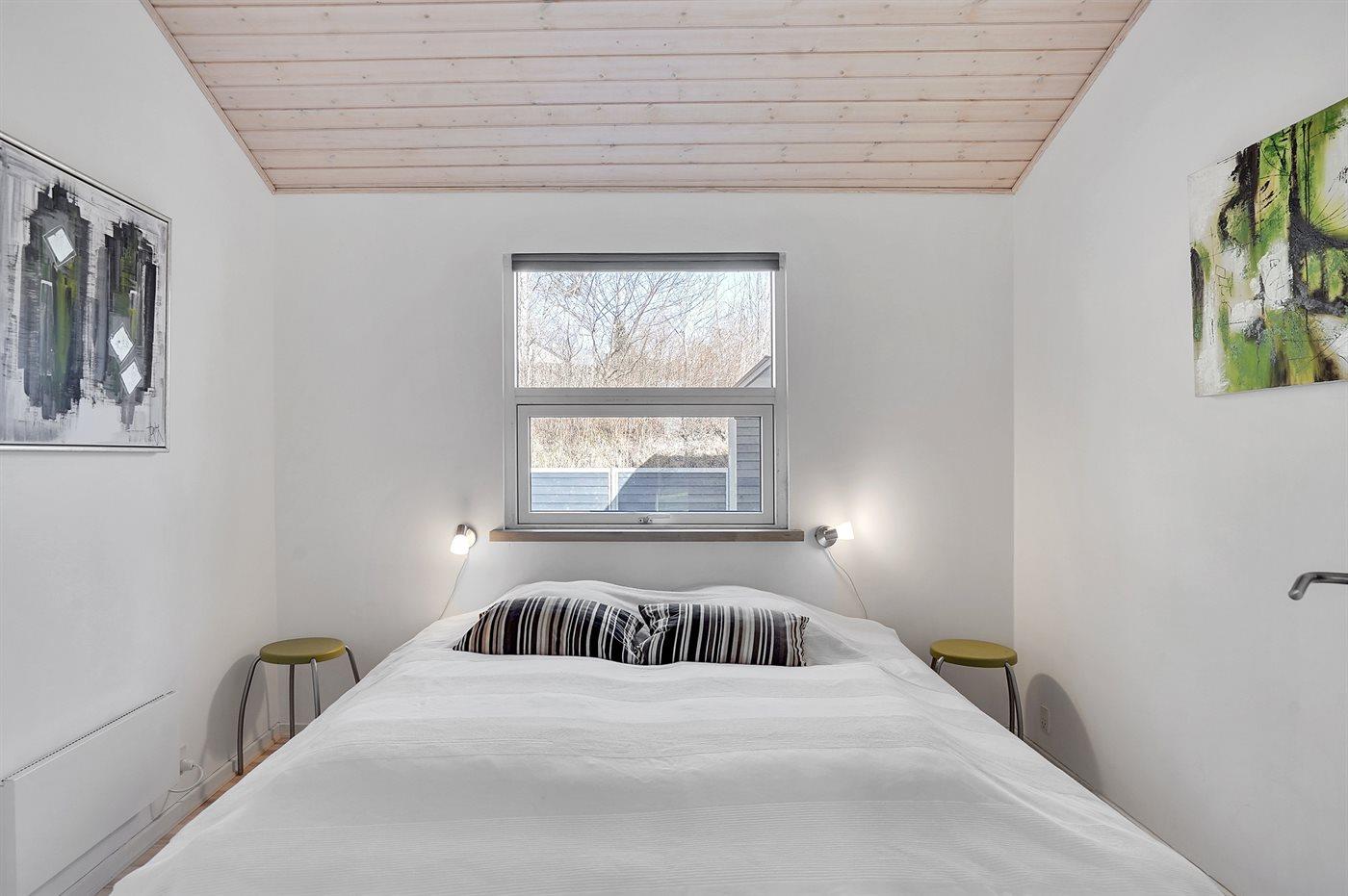 Der er i alt 3 soveværelser. Sovepladserne fordeler sig på: 4 sovepladser i dobbeltsenge. 2 sovepladser i enkeltsenge. 4 sovepladser på madrasser. 4 af disse sovepladser befinder sig på husets hems. Derudover er der 1 stk. barneseng.