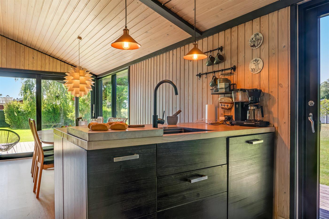 Køkkenet er udstyret med 1 køleskab. Der er 4 induktionskogeplader, varmluftovn, mikrobølgeovn samt opvaskemaskine. Der findes ekstra køleskab i bryggerset.