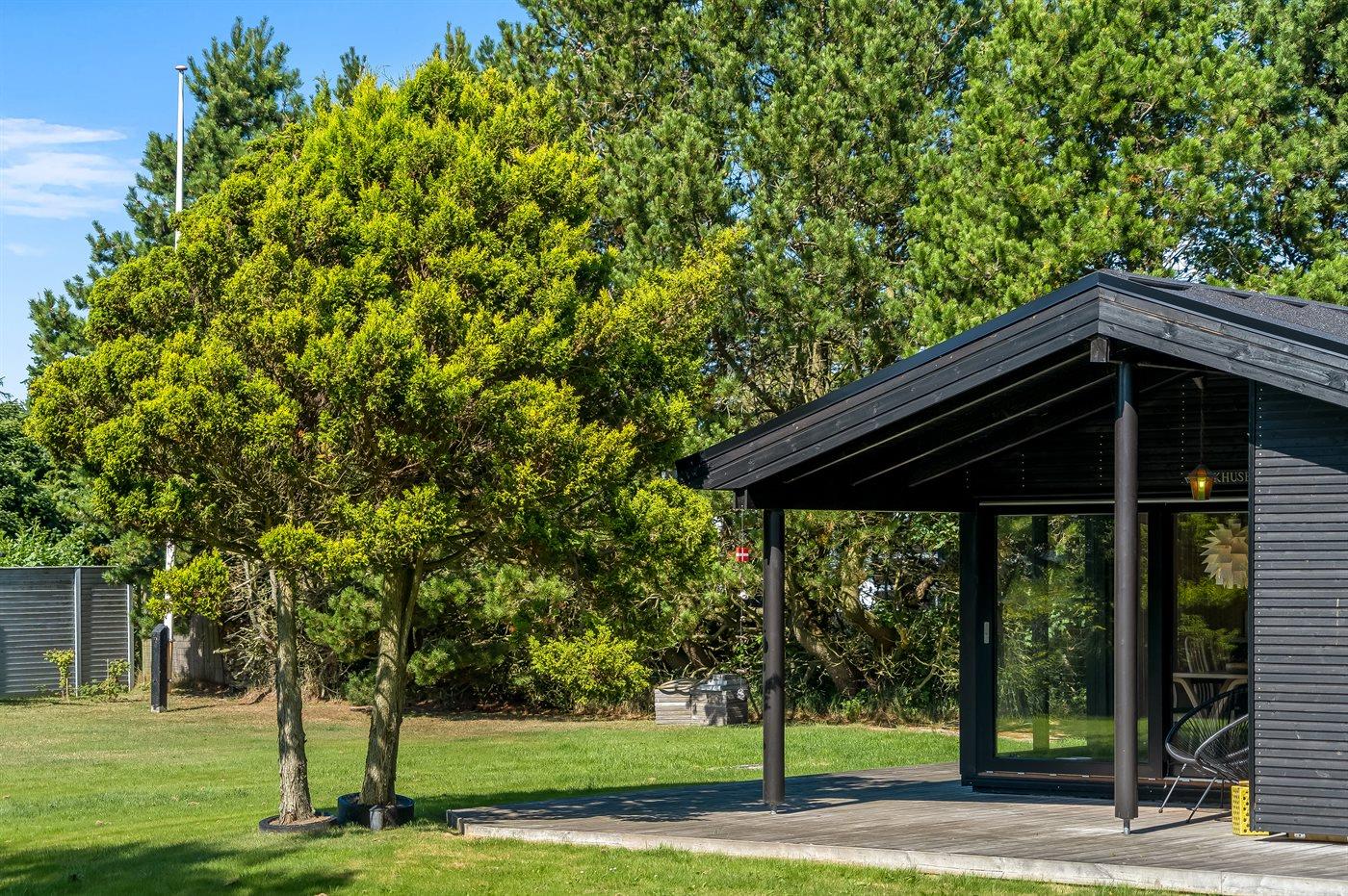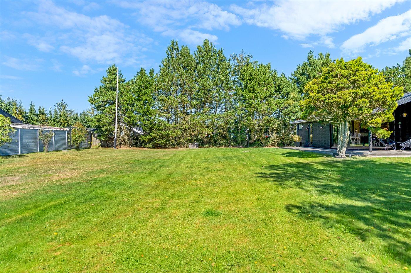 Ferieboligen er beliggende på en 1280 m² stor naturgrund. Grunden er indhegnet. Der er 600 m til havet. Nærmeste forretning er beliggende i en afstand af 1000 m. Til ferieboligen hører 80 m² terrasseareal. Desuden er der 12 m² overdækket terrasse. Der er redskabsrum. Udendørs bruser med varmt og koldt vand. Gasgrill med fri gas. Parkering ved ferieboligen.