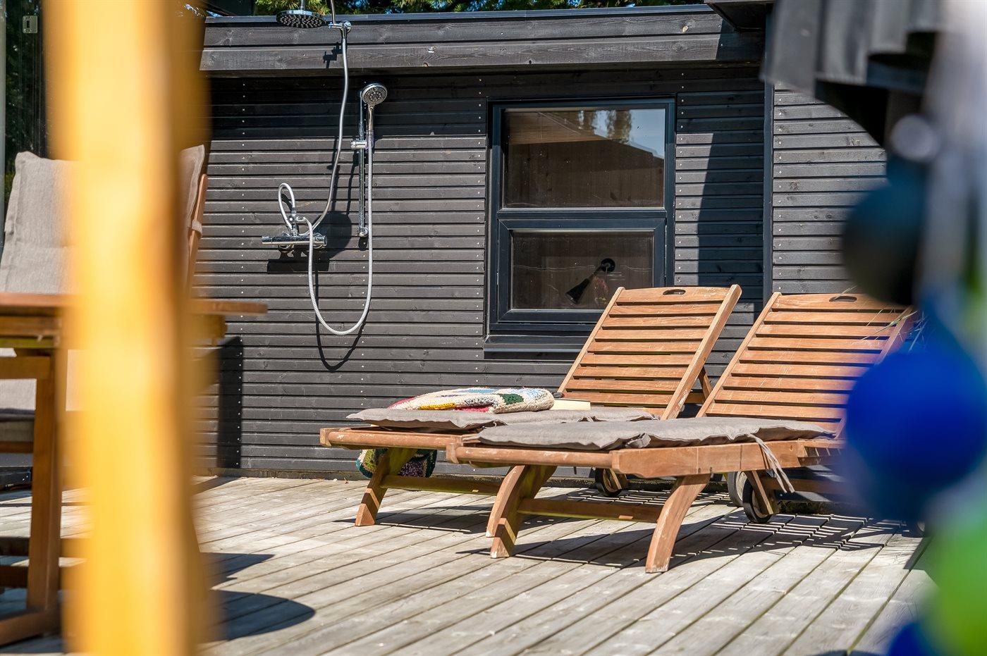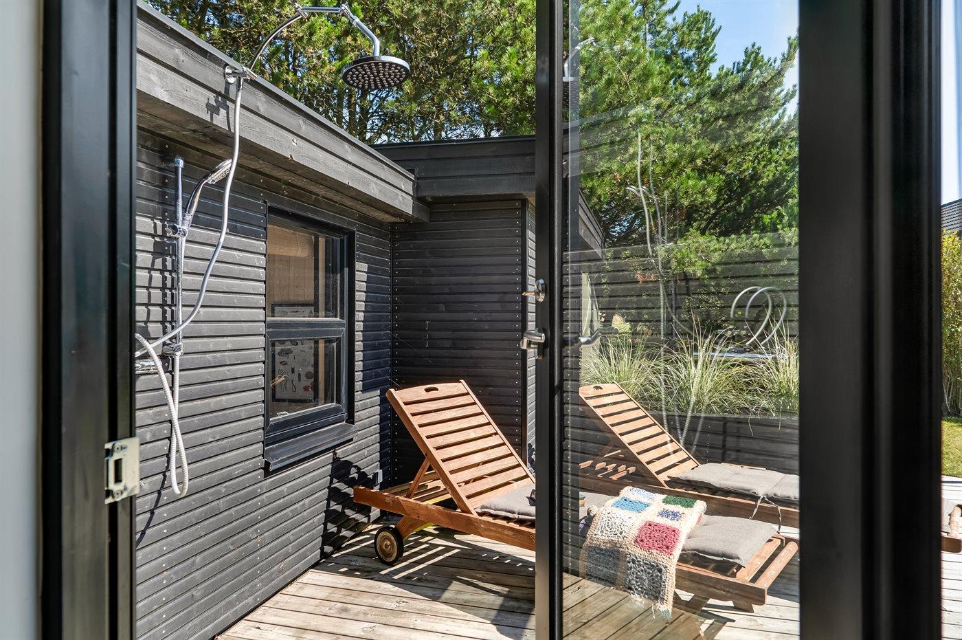 Sommerhuset byder på en lækker terrasse med grill, hvor I kan nyde sommerdagene og holde hyggelige grillaftener. Derudover er der en praktisk udendørs bruser, perfekt efter en tur på stranden eller en dag i solen.