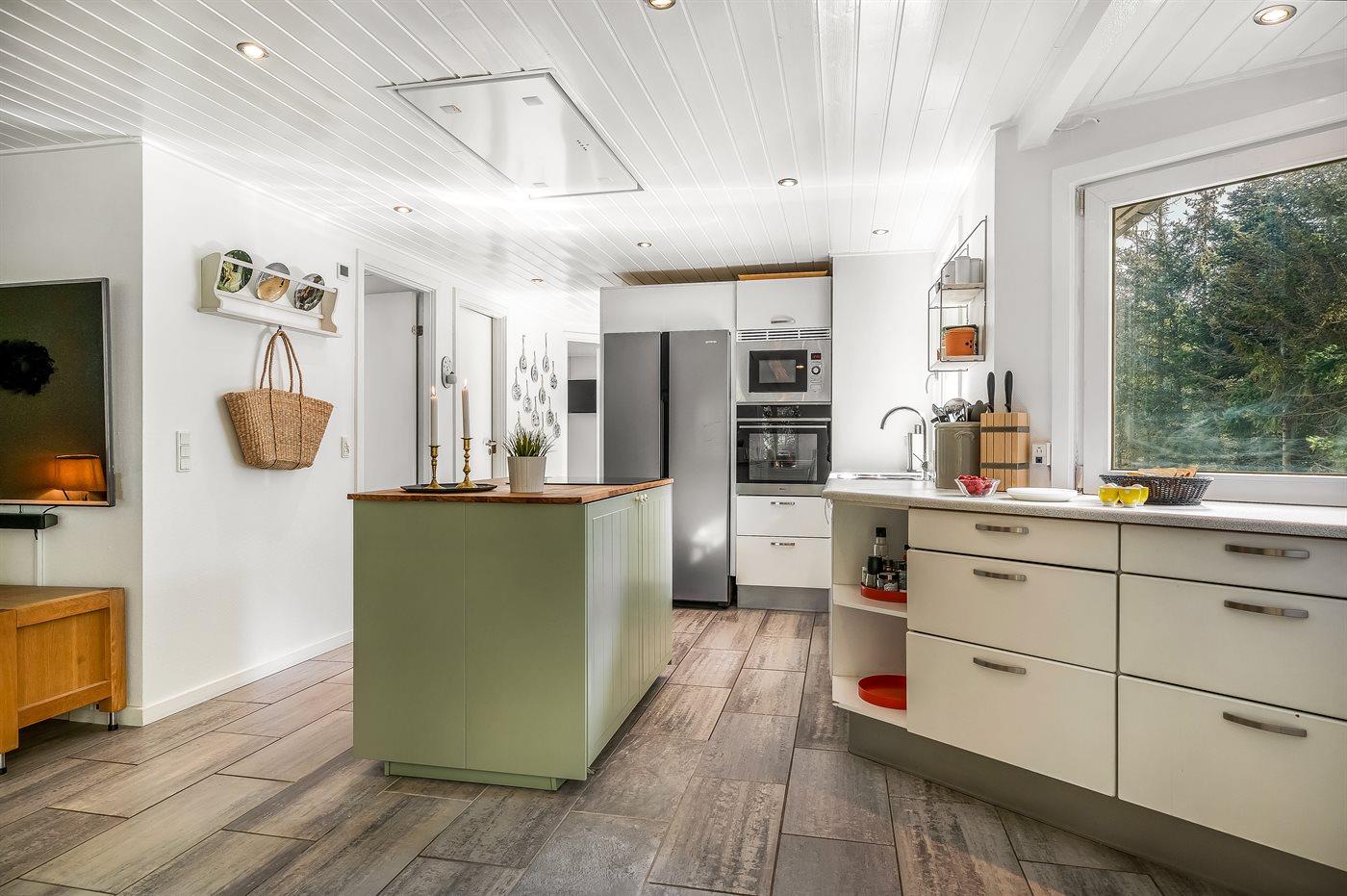 Køkkenet er udstyret med 1 køleskab. Der er 4 induktionskogeplader, varmluftovn, mikrobølgeovn samt opvaskemaskine.