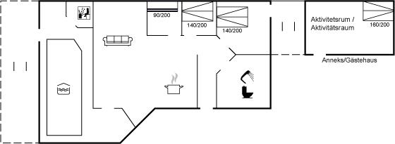 Der er i alt 3 soveværelser. Sovepladserne fordeler sig på: 6 sovepladser i dobbeltsenge. 2 sovepladser i køjeseng. 2 af disse sovepladser befinder sig i et anneks.