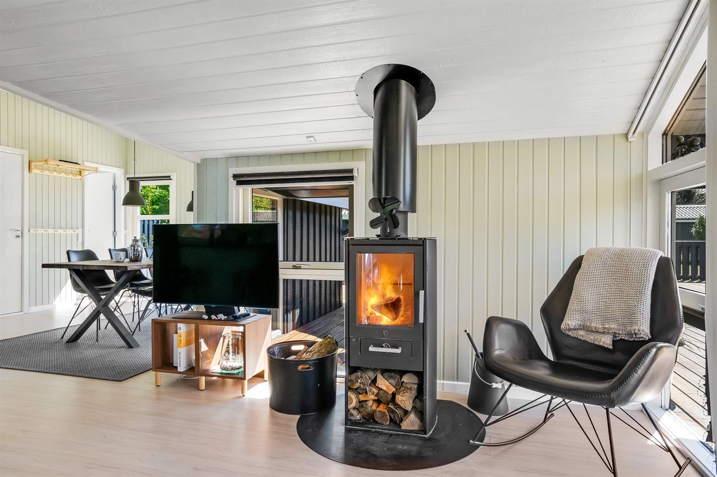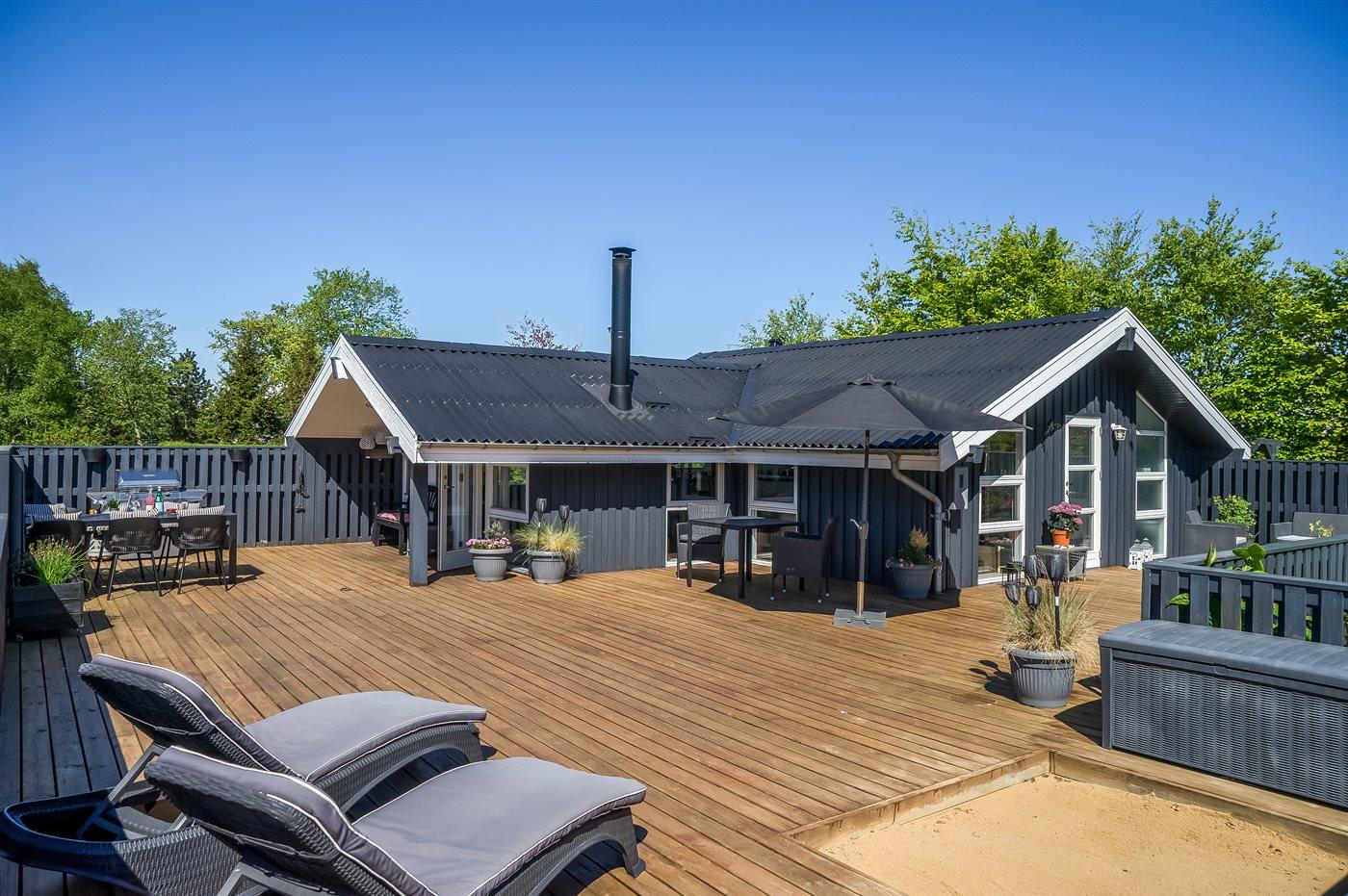 Dette dejlige og lyst indrettede sommerhus ligger i et populært ferieområde ikke langt fra vandet. Til huset hører et skønt, lukket terrasseareal med havemøbler og gode hyggekroge.