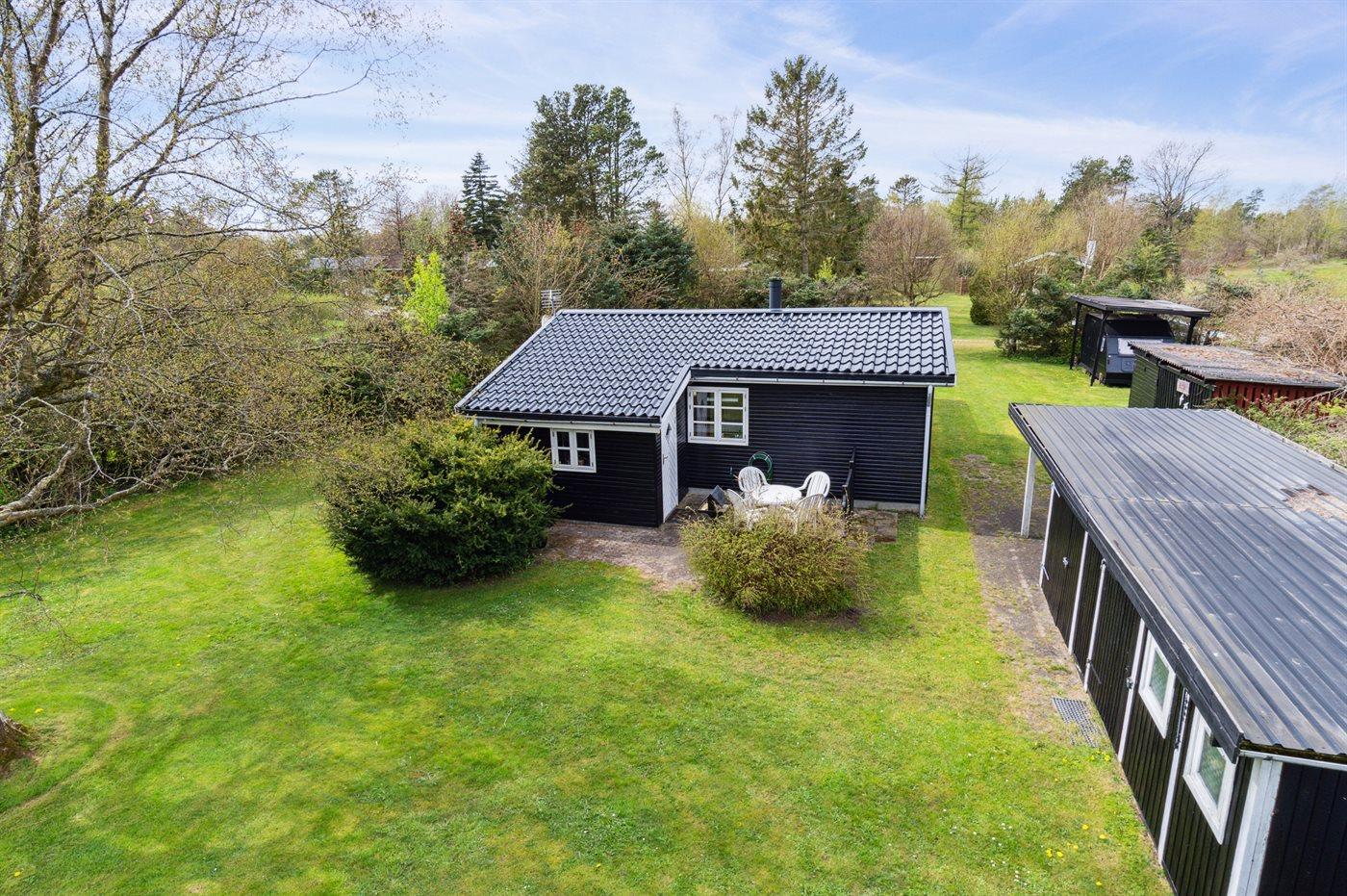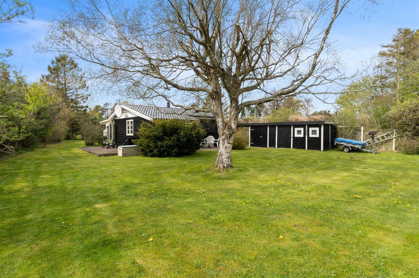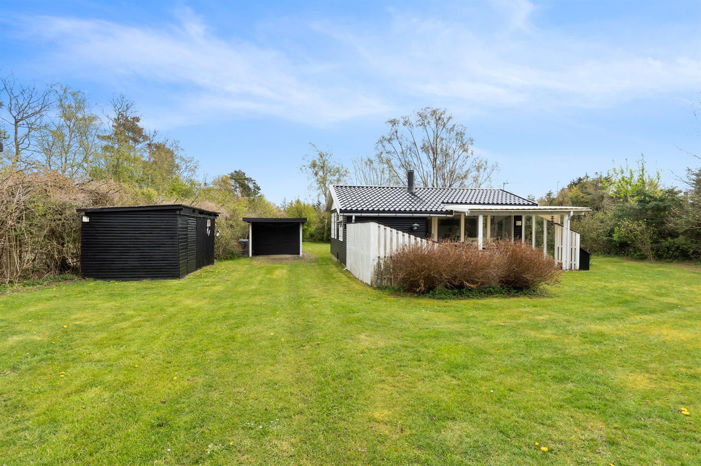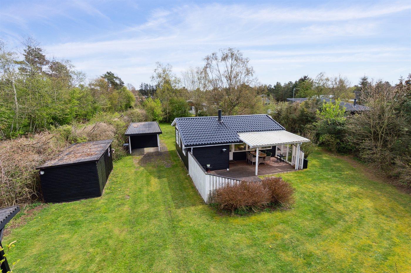 Ferieboligen er beliggende på en 1200 m² stor naturgrund. Der er 1300 m til havet. Nærmeste forretning er beliggende i en afstand af 2500 m. Til ferieboligen hører 15 m² terrasseareal. Desuden er der 10 m² overdækket terrasse. Der er redskabsrum. Grill til rådighed. Der er carport til rådighed. Parkering ved ferieboligen.