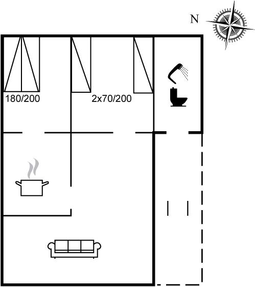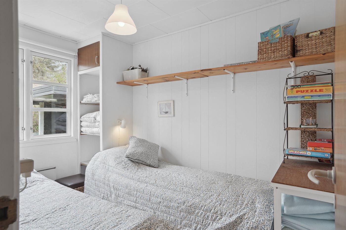 Der er i alt 2 soveværelser. Sovepladserne fordeler sig på: 2 sovepladser i dobbeltseng. 2 sovepladser i enkeltsenge.