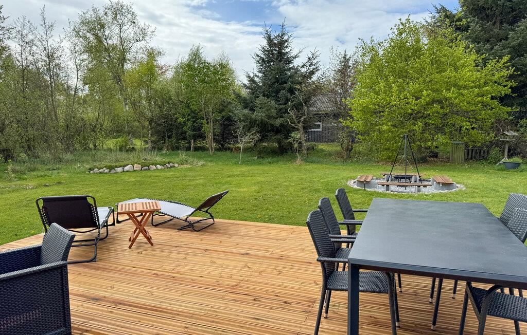 Huset ligger for enden af ??en vej med en ugeneret have, hvor der er god plads til solbadning og leg og mange havespil til hele familien. Der er også gode terrasser, hvor I kan nyde solen hele dagen lang.