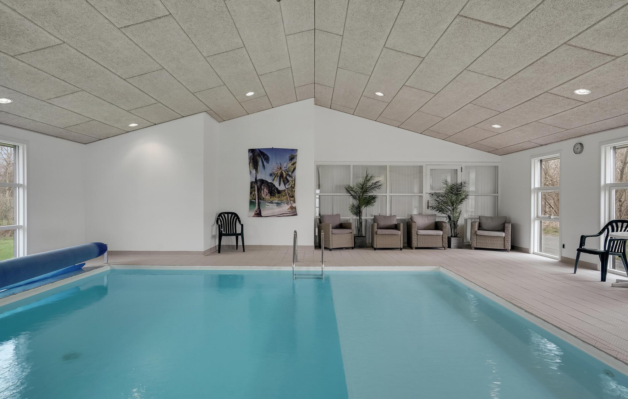 Moderne feriehus nær Hou Strand med wellness og fælles indendørspool i naturskønne omgivelser.