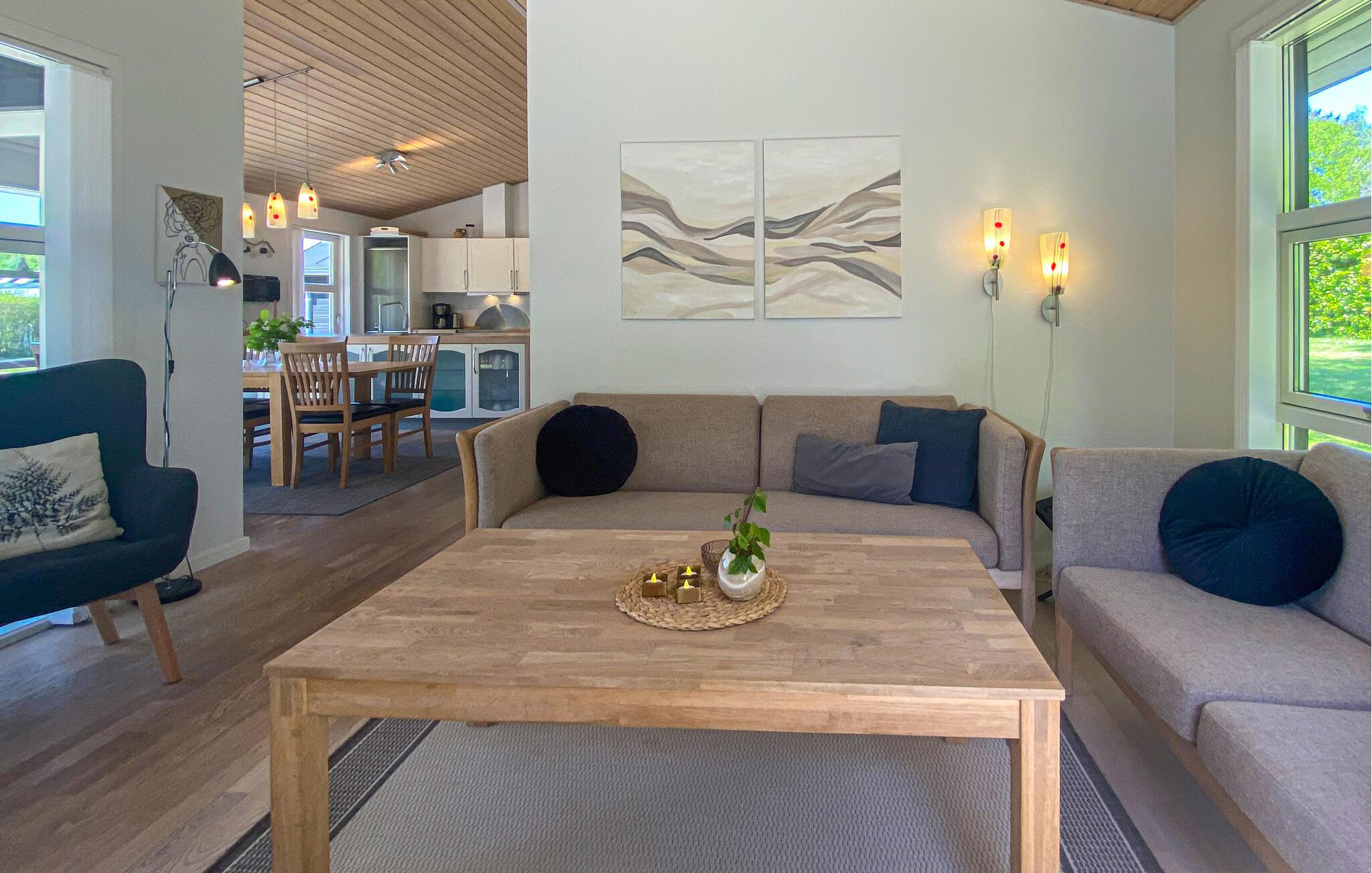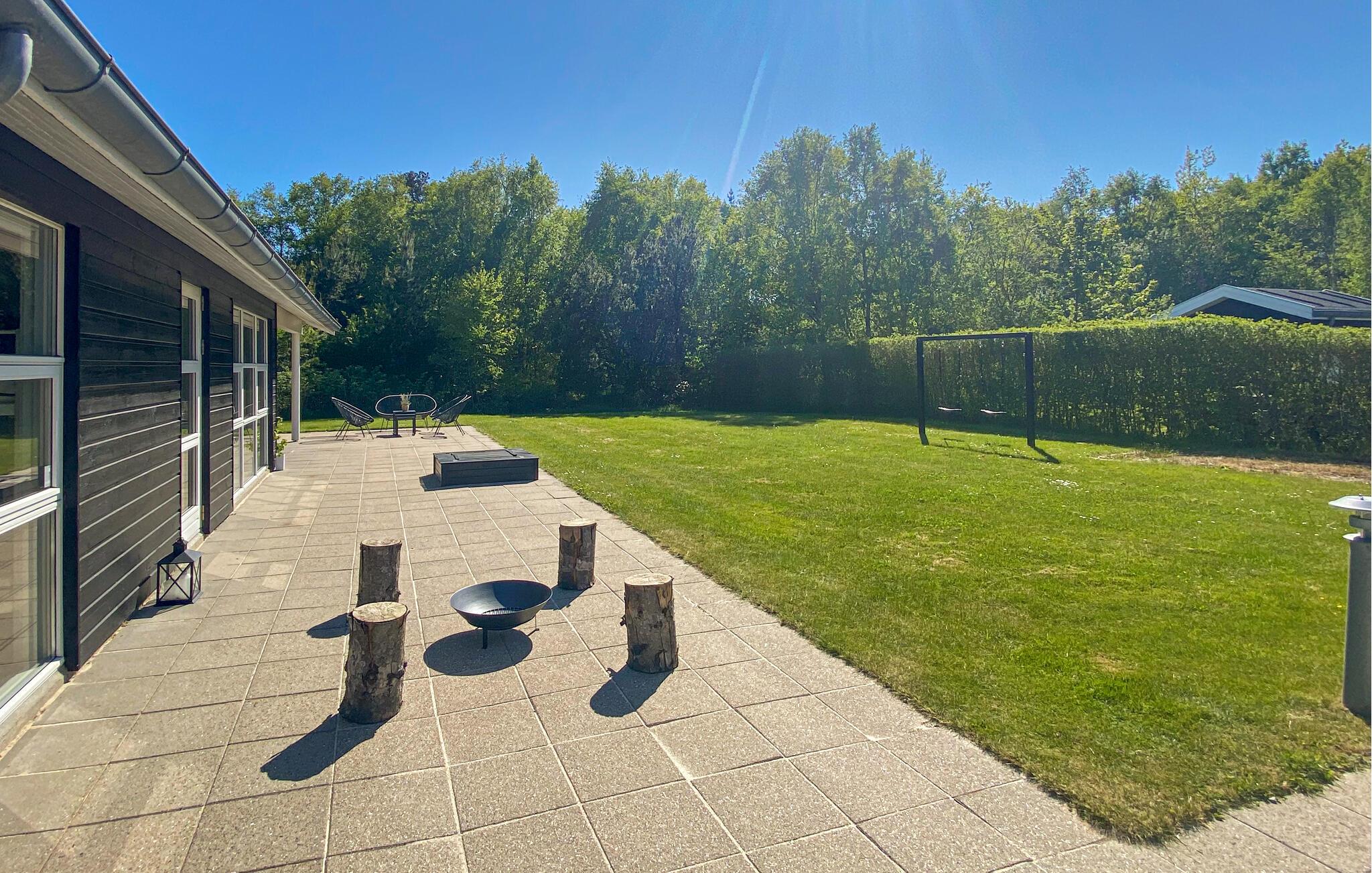 I kan også se frem til gode timer udendørs. Gør klar til en hyggelig grillmiddag på den store delvist overdækkede terrasse, mens børnene bygger løs i sandkassen. Nyd solen i liggestolene, snup en fodboldkamp på den store græsplæne eller tag en gyngetur. Efter en frisk dukkert i havet eller en gåtur på den børnevenlige strand kan I nyde de lange sommeraftener udendørs med solnedgange og skumfiduser over bål.