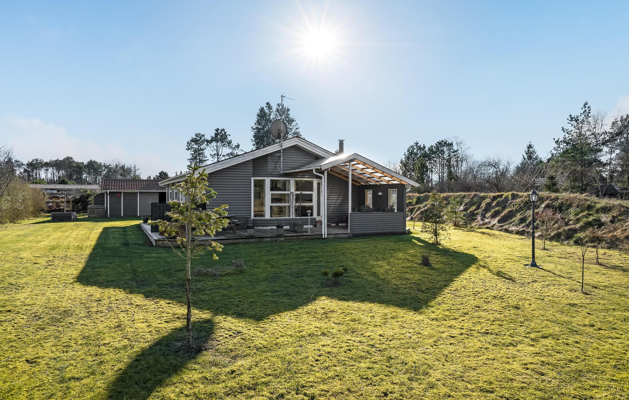 Charmerende feriehus nær Hou strand med stor have og brændeovn til afslappende dage.