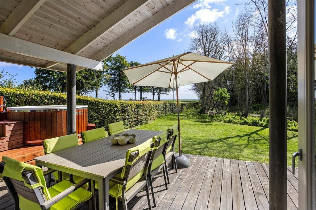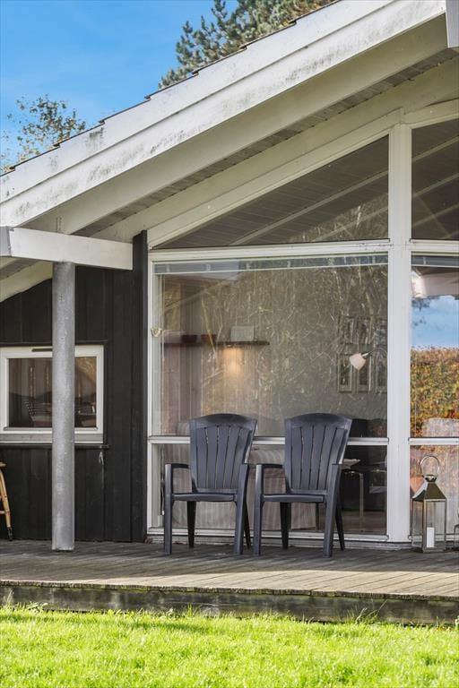 Den skønne have omkring sommerhuset er ideel til leg, afslapning og udeliv. Her kan børnene boltre sig, mens de voksne nyder en kop kaffe eller et glas vin på terrassen, omgivet af naturens skønhed. Den delvist overdækkede terrasse er perfekt til både morgenmad i solopgangen og hyggelige grillmiddage under stjernerne. Fra haven er der kun et kort skridt til den fælles badebro hvor du kan tage en forfriskende dukkert eller bare nyde solen på en varm dag. Den rolige beliggenhed giver mulighed for lange gåture langs vandet, hvor du kan opleve den unikke natur og de smukke omgivelser.
