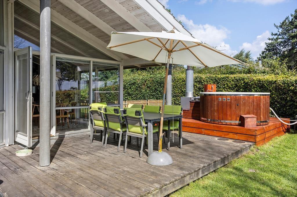 Når du træder ind i sommerhuset, bliver du mødt af en lys og indbydende atmosfære, der straks får dig til at føle dig hjemme. Det hyggelige køkken/alrum er husets hjerte og indbyder til socialt samvær med familie og venner. Her kan du tilberede lækre måltider, mens brændeovnen skaber en varm og behagelig stemning. Fra stuen er der direkte adgang til den store terrasse, hvor du kan nyde den betagende udsigt til vandet. Husets tre dejlige soveværelser tilbyder komfortable senge, så du kan få en god nats søvn efter en dag fyldt med eventyr. I stuen finder du også en hyggelig alkove, der er perfekt til de mindre gæster eller til en ekstra gæst. Badeværelset er en sand oase med både spa og sauna, hvor du kan forkæle dig selv med afslapning efter en lang dag ved stranden.