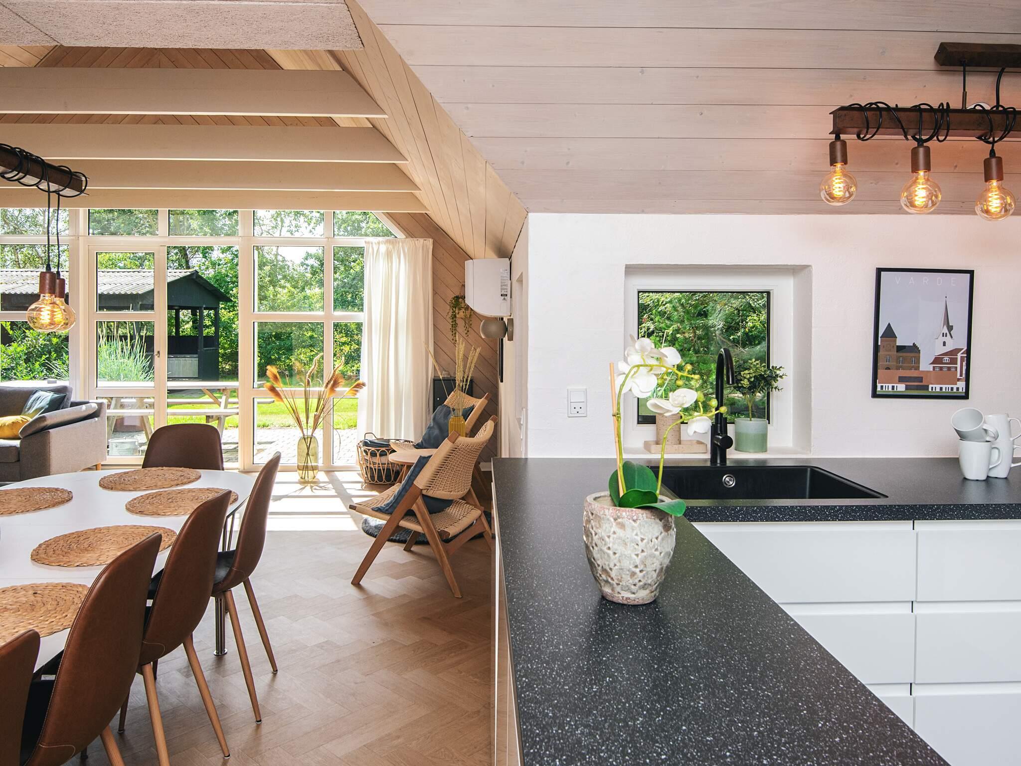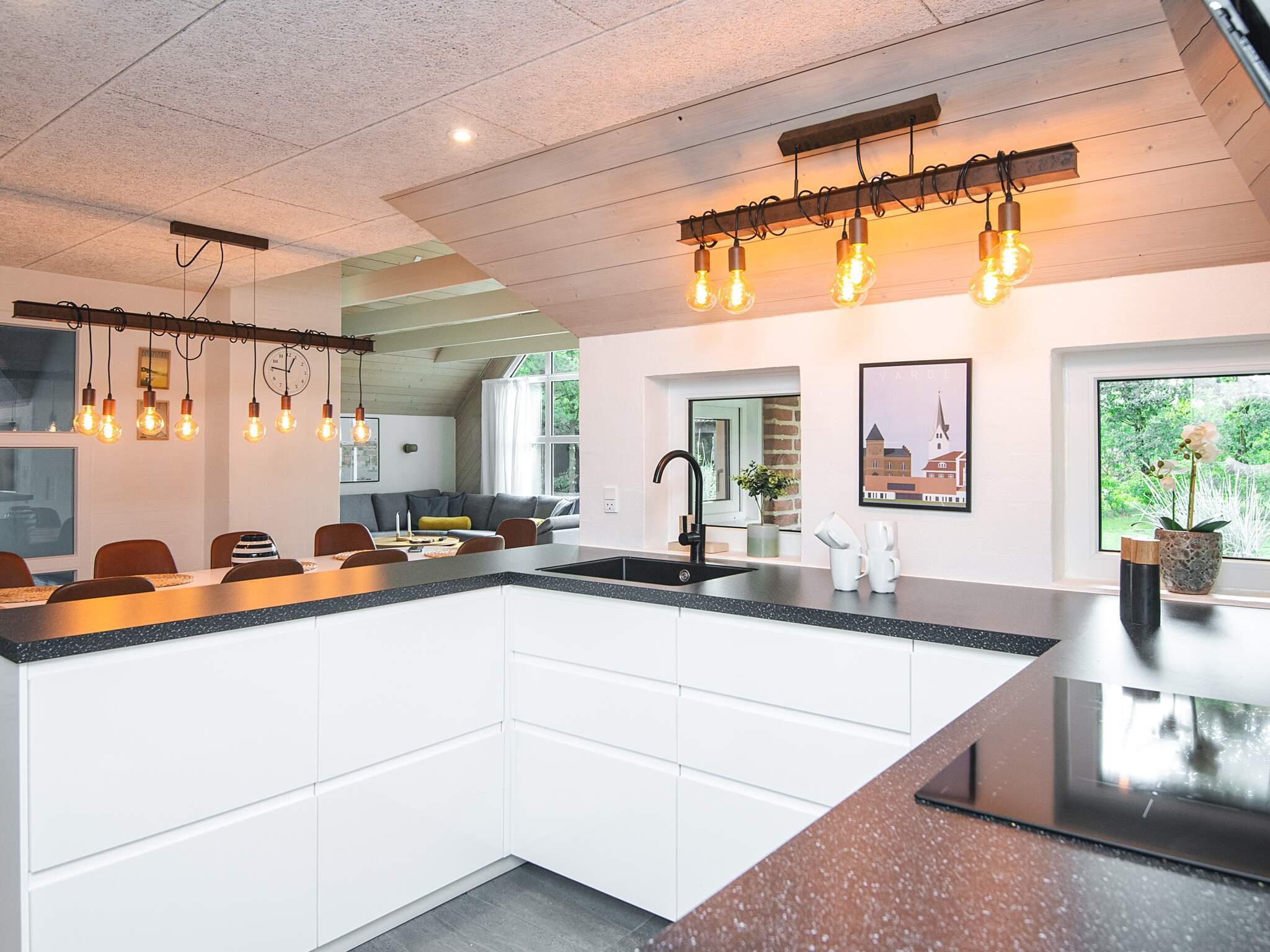 Indenfor skaber et lyst åbent køkken og stue med brændeovn et varmt og indbydende centrum for familielivet. Herfra kan du gå ud til det private poolområde med en 3x6 m opvarmet swimmingpool, spa til fire personer og en afslappende sauna. Huset har fire hyggelige soveværelser, to badeværelser (det ene med gulvvarme) og gennemtænkte faciliteter, herunder vaskemaskine, tørretumbler, barneseng, højstol og Smart Lock-nøgleboks for nem indtjekning.