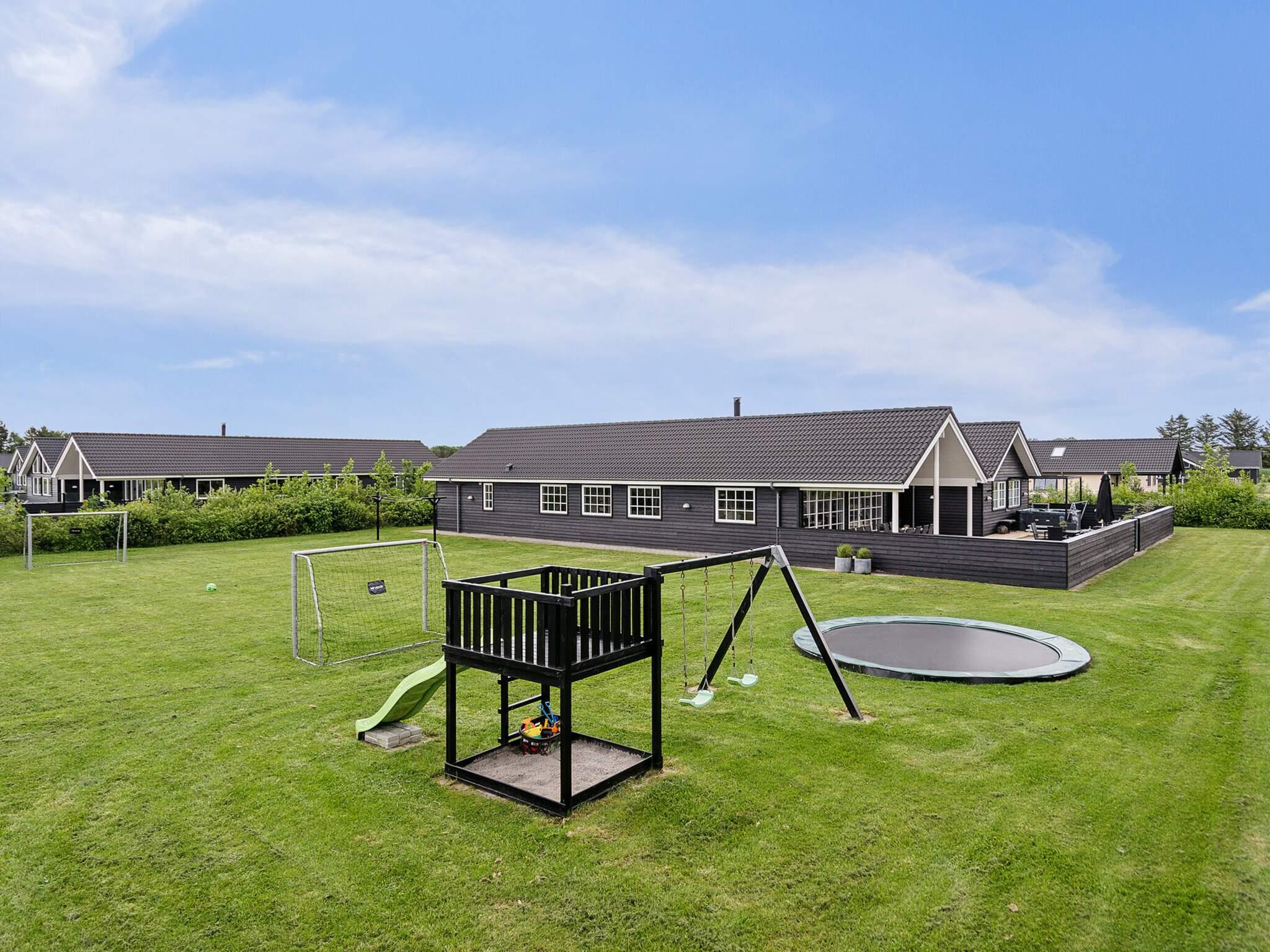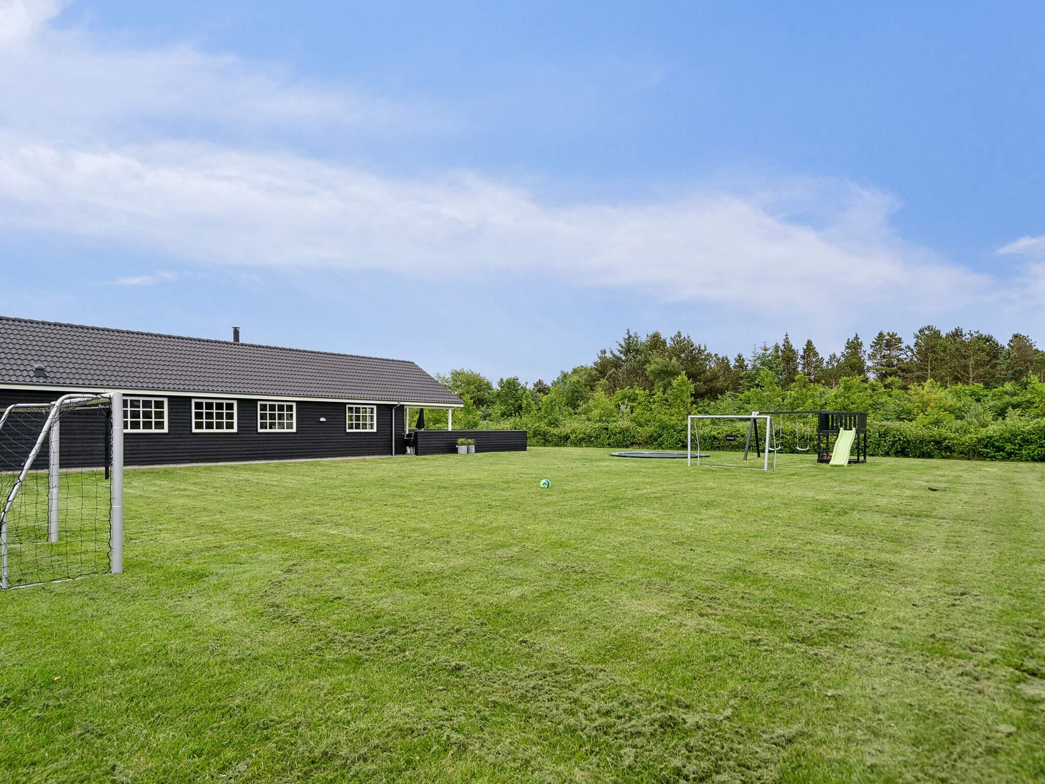 Hvis solen skinner, kan du nyde den danske sommer på terrassen, hvor der er havemøbler og grill. Terrassen er lukket og delvist overdækket, så der er også mulighed for at sidde i skygge eller læ. I haven finder du både et gyngestativ/legetårn, en lille sandkasse 2 fodboldmål og en nedgravet trampolin. Haven er indhegnet rundt om hele grunden.