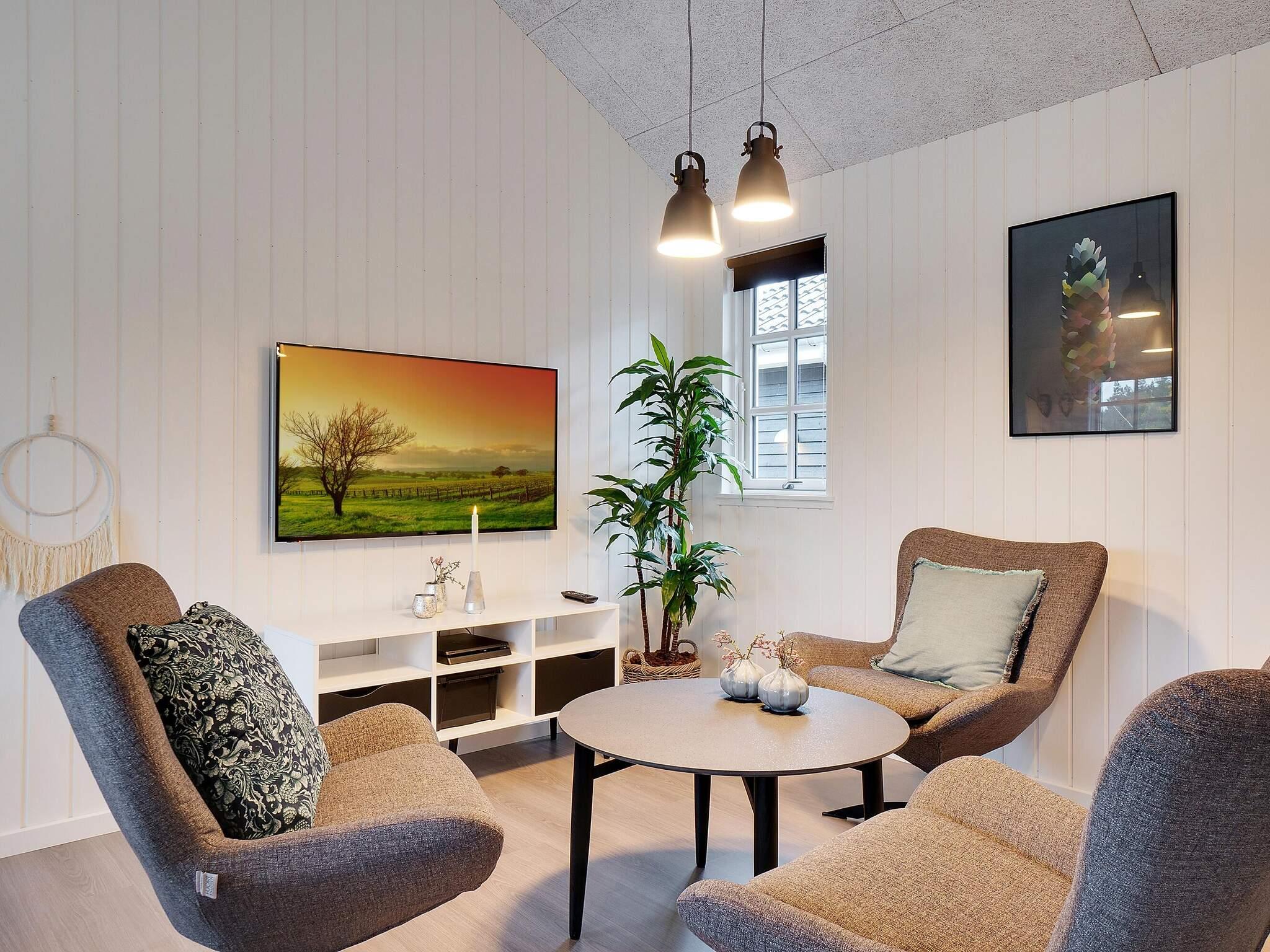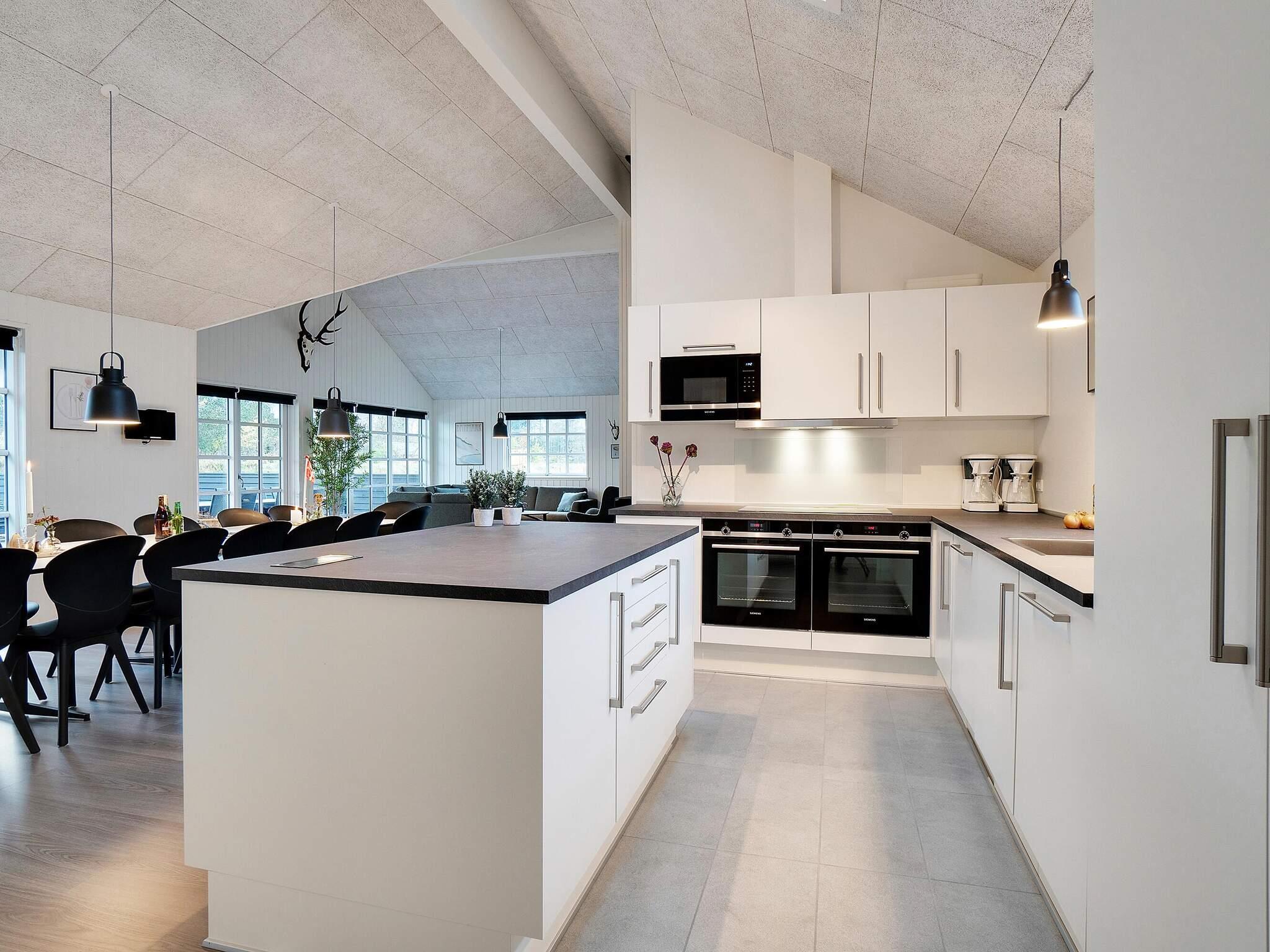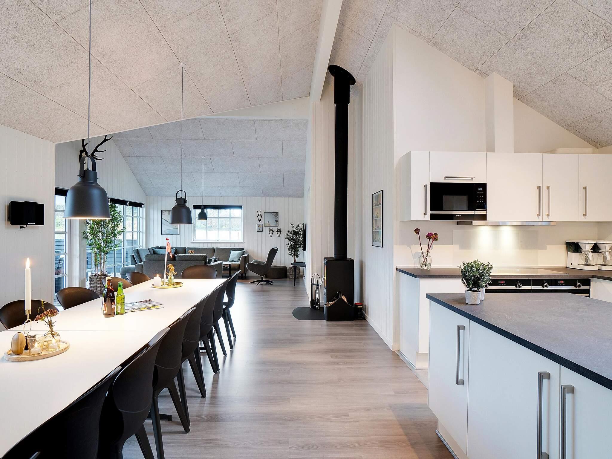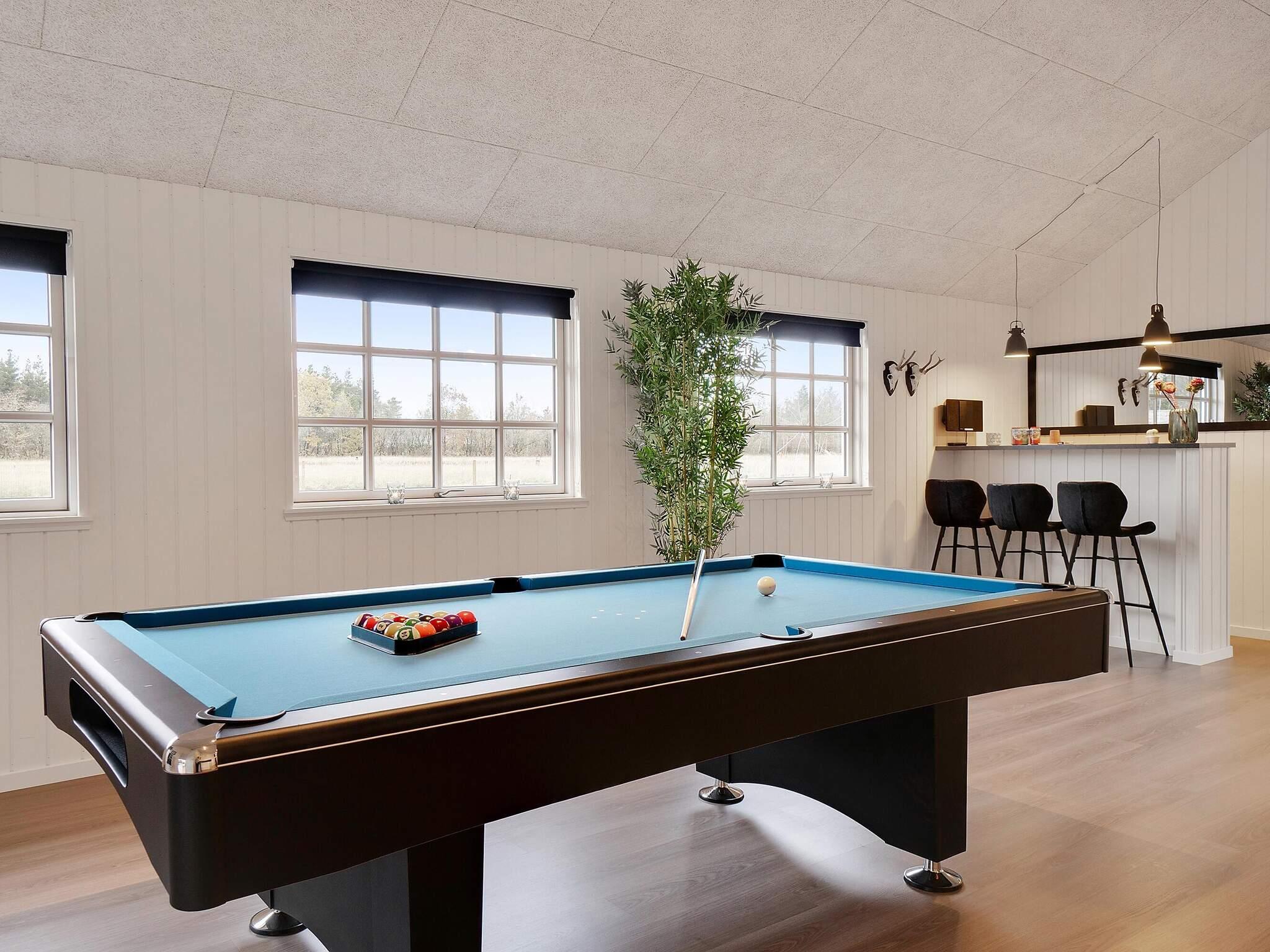 I dette skønne luksussommerhus, er det muligt at udfordre hinanden i et slag billard eller bordtennis. I aktivitetsrummet er der desuden mulighed for at dyste i et bordfodboldspil samt spille PlayStation 4. Fra baren i hjørnet kan tilskuerne nyde en kølig drink. Køkkenalrummet er hyggeligt indrettet med sofagruppe foran fjernsynet og et langt spisebord, hvor der er plads til alle. Sommerhuset har desuden en brændeovn, som kan lune på kølige dage. Køkkenet er stilfuldt indrettet og udstyret, så der kan kokkereres et lækkert måltid.