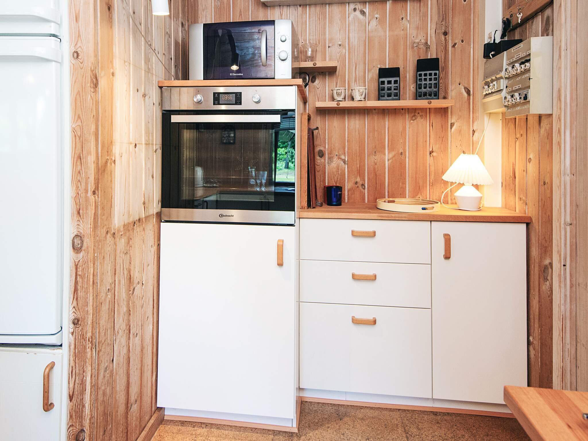 Dette hyggelige feriehus ligger på en stor smuk naturgrund i det fantastiske kystlandskab ved Houstrup. Stuen har brændeovn og er åben til spiseplads og køkken, hvilket skaber et lyst og indbydende rum for familielivet. Fra stuen kan I træde direkte ud på en stor, delvist overdækket terrasse med dejlig udsigt over ejendommen, hvor børn kan hygge sig med gynger eller sandkasse.