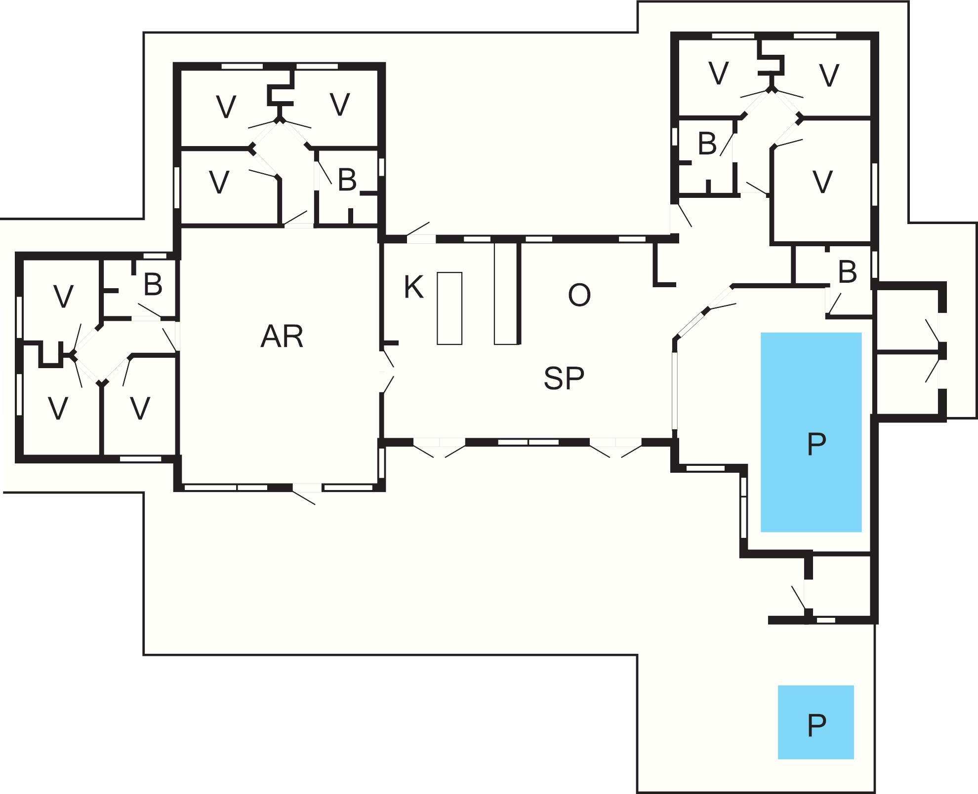 9 Soveværelser: (2S)+(2S)+(2S)+(2S)+(2S)+(2S)+(2S)+(2S)+(2K), barneseng