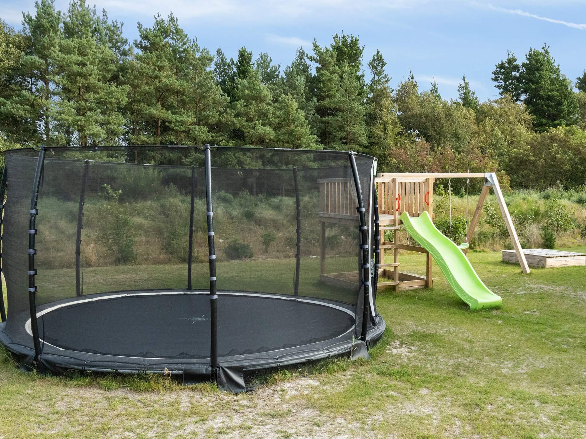 Udendørs er der rig mulighed for både hygge og leg. På den delvist overdækkede terrasse kan I nyde aftensmaden fra grillen, mens børnene leger i sandkassen, gynger eller hopper på trampolinen.