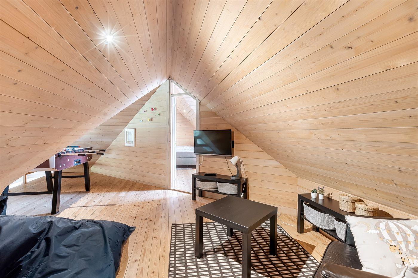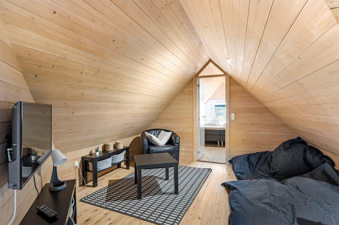 Opholdsstuen er udstyret med lædersofa arrangement, Morsø brændeovn og 55” Smart-TV med indbygget ChromeCast og gratis Viaplay. Desuden fællesantenne og trådløs internetforbindelse på 200/200 Mbit. Hyggeafdeling på 1. sal. med ”Fatboy” sækkestole, ekstra TV og stort kvalitetsbordfodboldspil. Kombineret vaskemaskine/tørretumbler samt køle-/frys findes i ”Utility Room” i opvarmet skur.