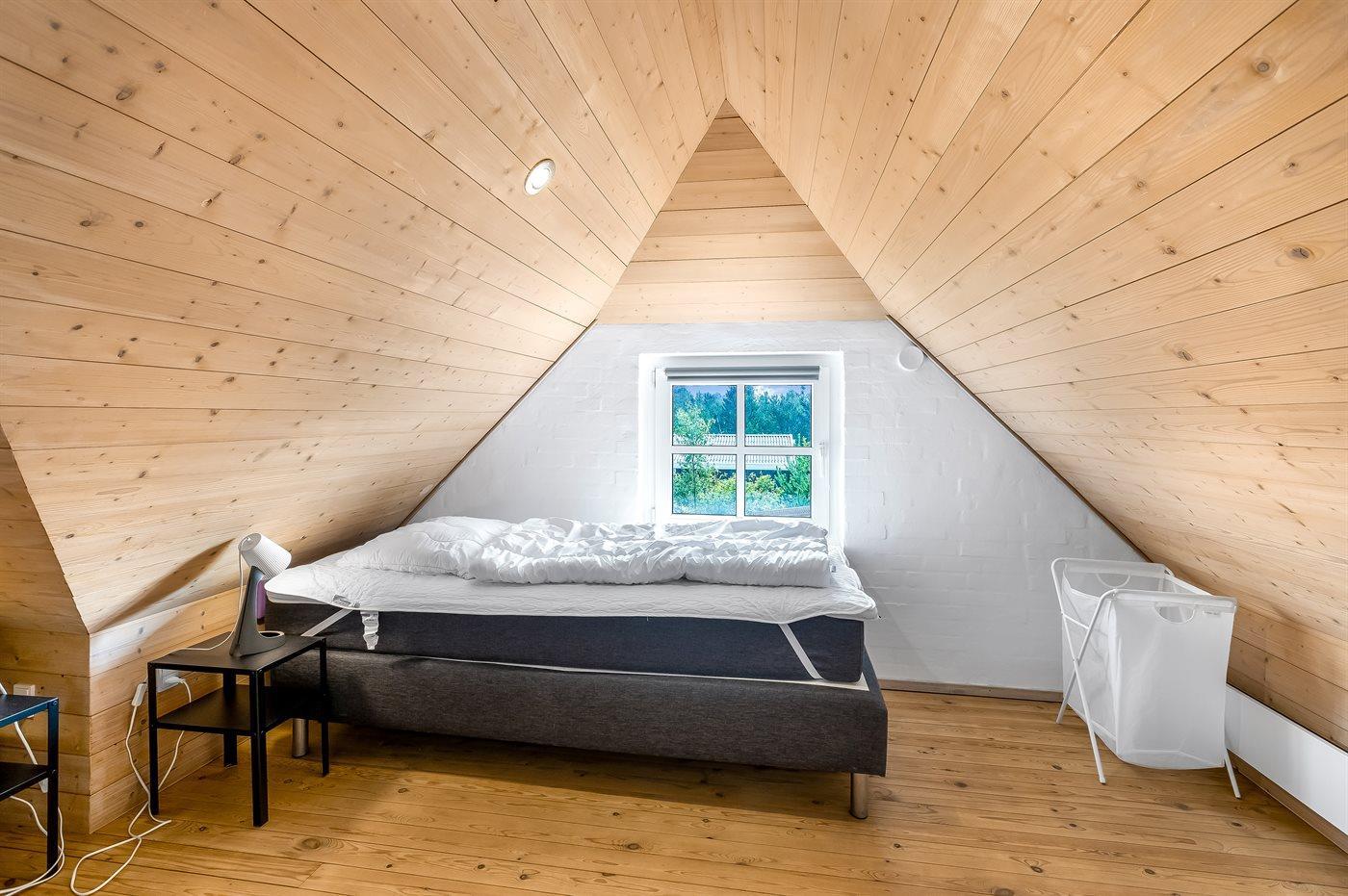 Til huset hører en stor åben terrasse med diverse havemøbler. I stueetagen er der hvidmalede, vandskurede vægge, ludbehandlede trælofter, parketgulv i stue, gulvtæpper på værelser og klinkegulv i køkken og baderum. På førstesalen er alle vægge, gulve og lofter i ludbehandlet træ.