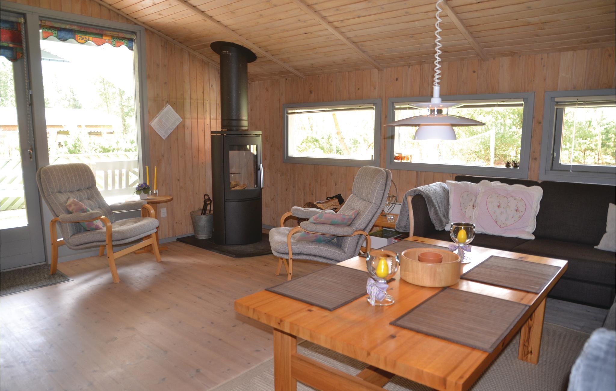 Rigtig hyggeligt og personligt indrettet sommerhus beliggende på en dejlig stor og ugeneret naturgrund, hvor der er anlagt en fin bålplads. Huset er personligt indrettet i typisk sommerhusstil. I køkken/alrummet kan I hygge jer foran brændeovnen, mens I spiller brætspil eller kort. Sæt jer til rette i havemøblerne på den store, delvis indhegnede terrasse, hvor I både kan sidde overdækket og under åben himmel.