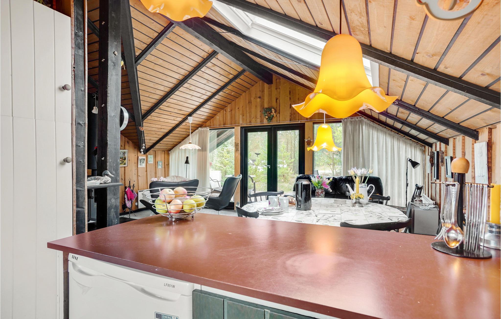 Find jer godt til rette i den hyggelige atmosfære i jeres stue og glæd jer til en stille pause med udsigt til det grønne. Lad brændeovnen knitre, mens I slapper af i de komfortable lænestole med en god bog. Tilbered jeres livretter i det åbne køkken og afslut en lang dag med udflugter i den friske luft med en god film.