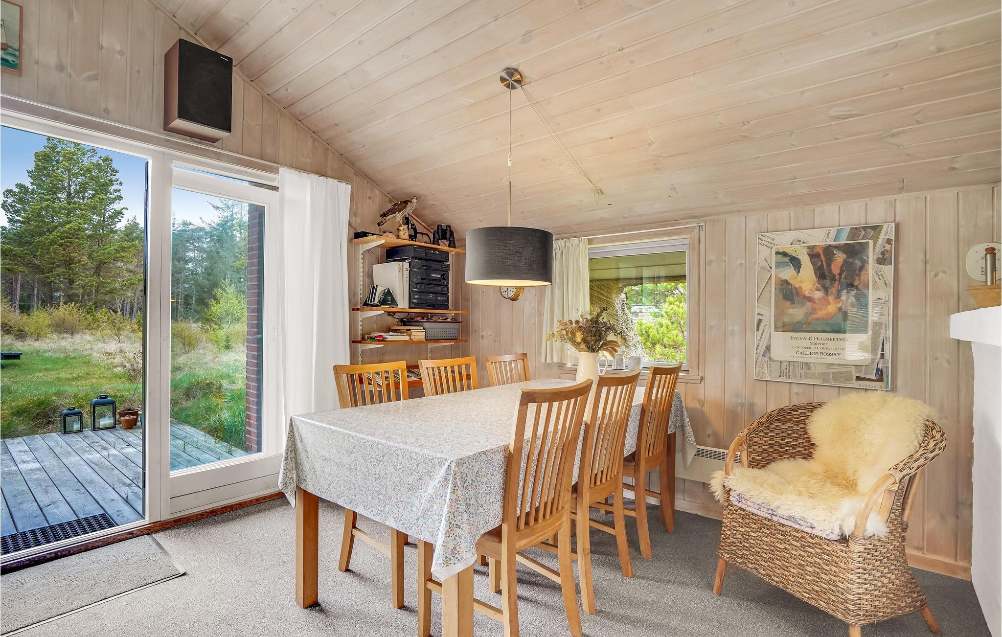 Dette hyggelige og velholdte sommerhus er beliggende på en 3000 m² stor, ugenert naturgrund med græsarealer, lyng og høje fyrretræer. Huset har mange bekvemmeligheder bl.a. fibernet med mange udenlandske og danske tv-kanaler samt gratis internetforbindelse. Førstesalen er indrettet meget børnevenligt med Playstation, film, spil, legoklodser og legetøj. Glæd jer til at besøge det lokale badeland med wellness- og sportsaktiviteter for alle. I nærhedne er også en stor, fælles udendørs legeplads og boldbane (75 m).