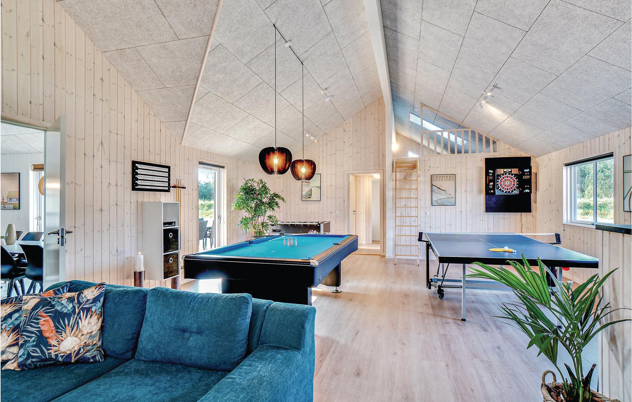 Luksussommerhus med pool og aktivitetsrum ved strand