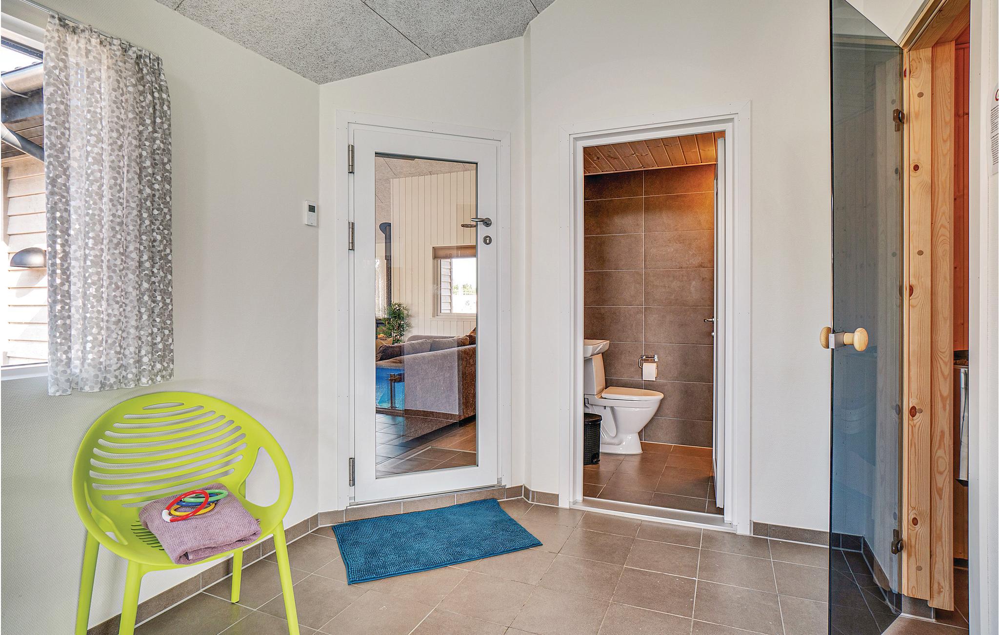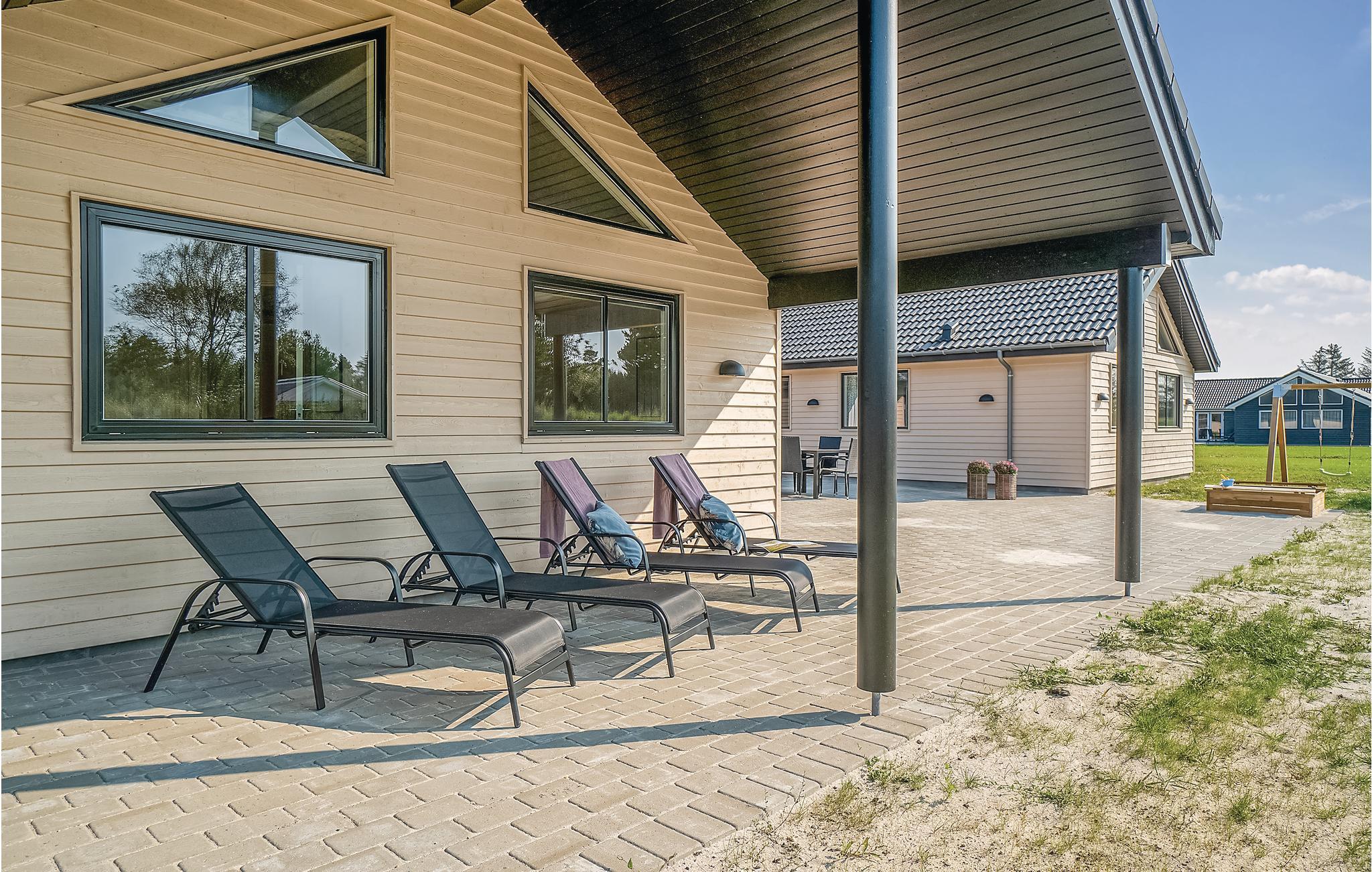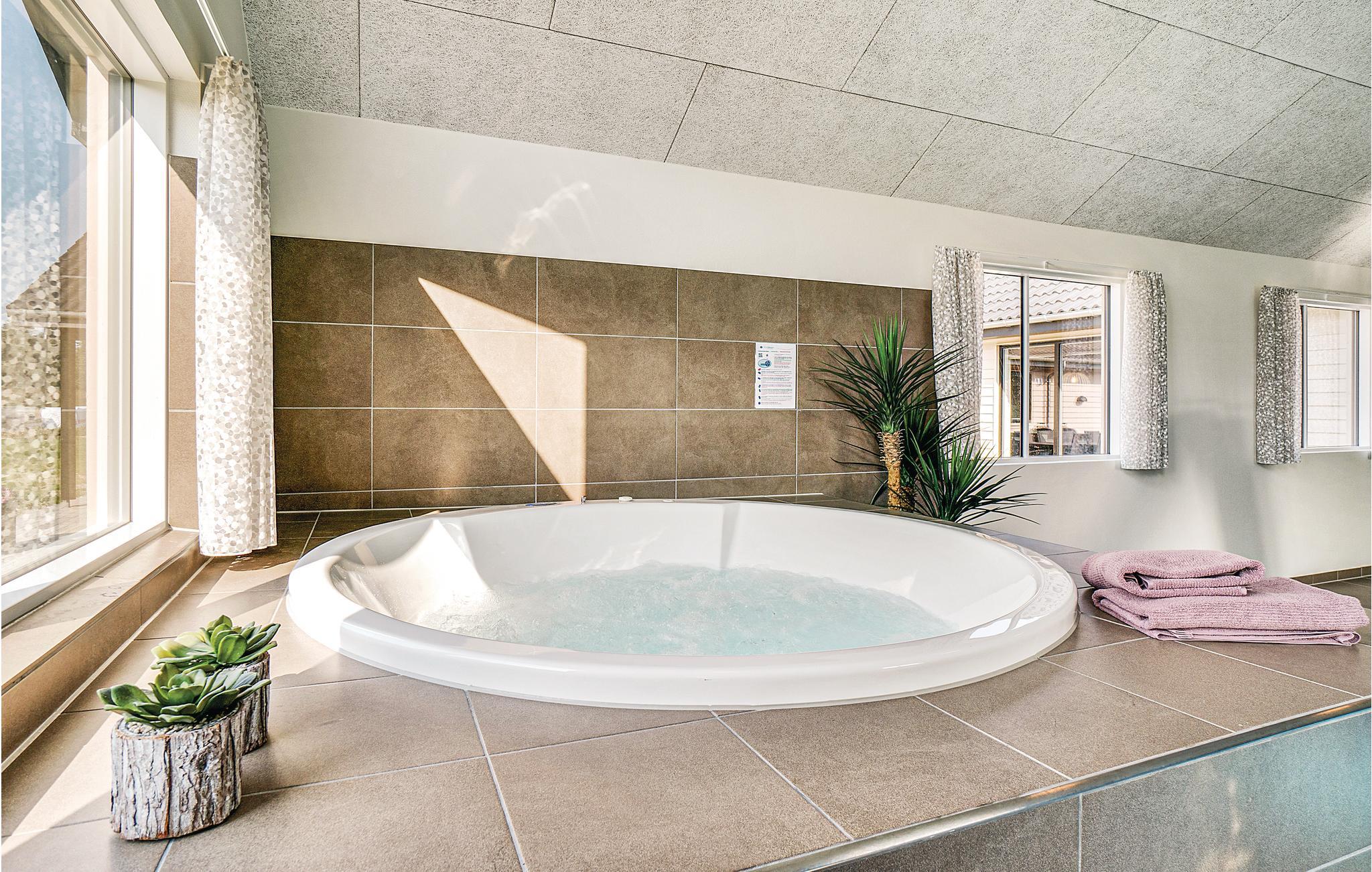 Ikke langt fra det brusende Vesterhav og tæt på Vestjyllands mange spændende attraktioner ligger dette fantastiske sommerhus med plads til 20 personer. De otte soveværelser er fordelt på tre soveafdelinger med hver sit badeværelse. De resterende fire sovepladser befinder sig på hemsen i aktivitetsrummet (bedst til børn og unge). Endvidere findes der et ekstra badeværelse i swimmingpoolafdelingen.