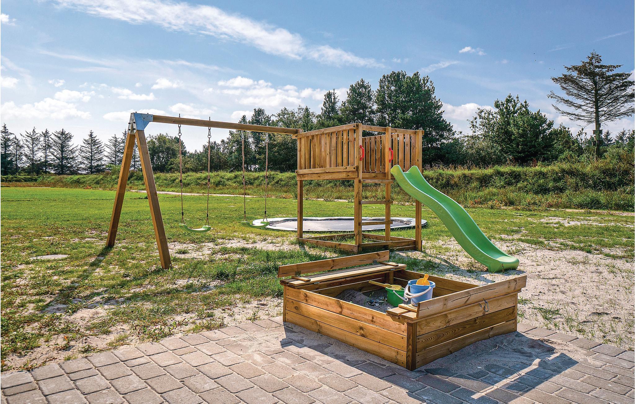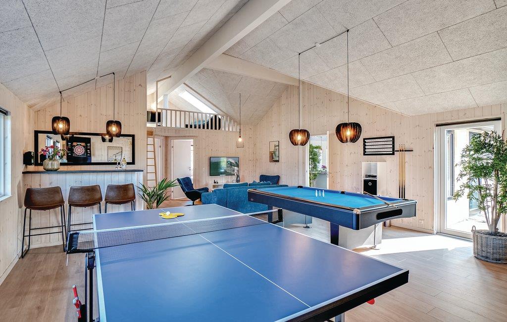 Ferie er for mange også ensbetydende med lækker mad. Køkkenet er selvfølgelig veludstyret og har både to opvaskemaskiner, to ovne, to håndvaske og rigelig køleskabsplads, så madlavning til mange mennesker ikke er en udfordring. Sommerhuset har flere wellness-faciliteter i egen poolafdeling med både spabad, sauna og en stor indendørs swimmingpool med romersk trappe, vandrutsjebane og modstrømsanlæg. I det store aktivitetsrum kan der spilles og dystes dagen lang. Her finder I både billard, bordtennis, bordfodbold og dart. I kan også tage et spil PlayStation4 eller slænge jer i husets bar. Udendørs finder I en flot delvist overdækket terrasse med grill og havemøbler, som er oplagt til en hyggelig grillaften eller afslapning i sommersolen. I haven er der gynge, sandkasse og trampolin til børnene.