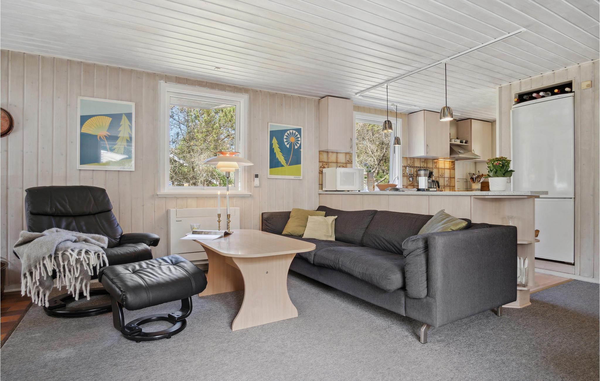 Huset ligger i idylliske omgivelser i en skov og tæt på både Vesterhavet og Ringkøbing Fjord. Indretningen fremtræder varmt og pænt med træpaneler og kunst på væggene, der sammen med de gode møbler gør det nemt at komme ned i tempo og glemme hverdagen for en stund. Tænd op i brændeovnen, læs en god bog eller køb snacks ind til en hyggelig filmaften efter en skøn dag ved vandet. Skal I gøre det ekstra godt for jer selv, kan I sætte jer godt til rette i saunaen og svede kroppen godt igennem.