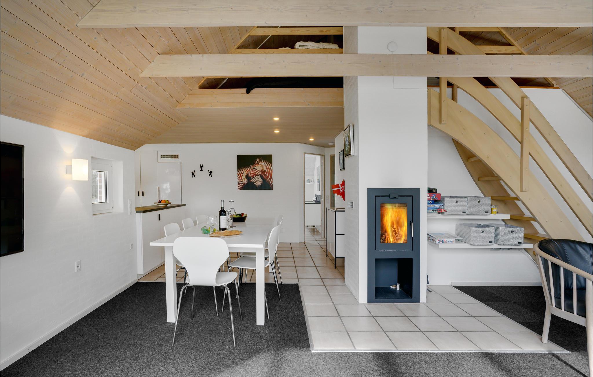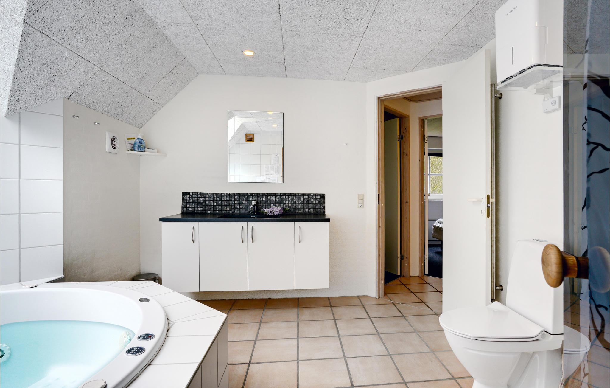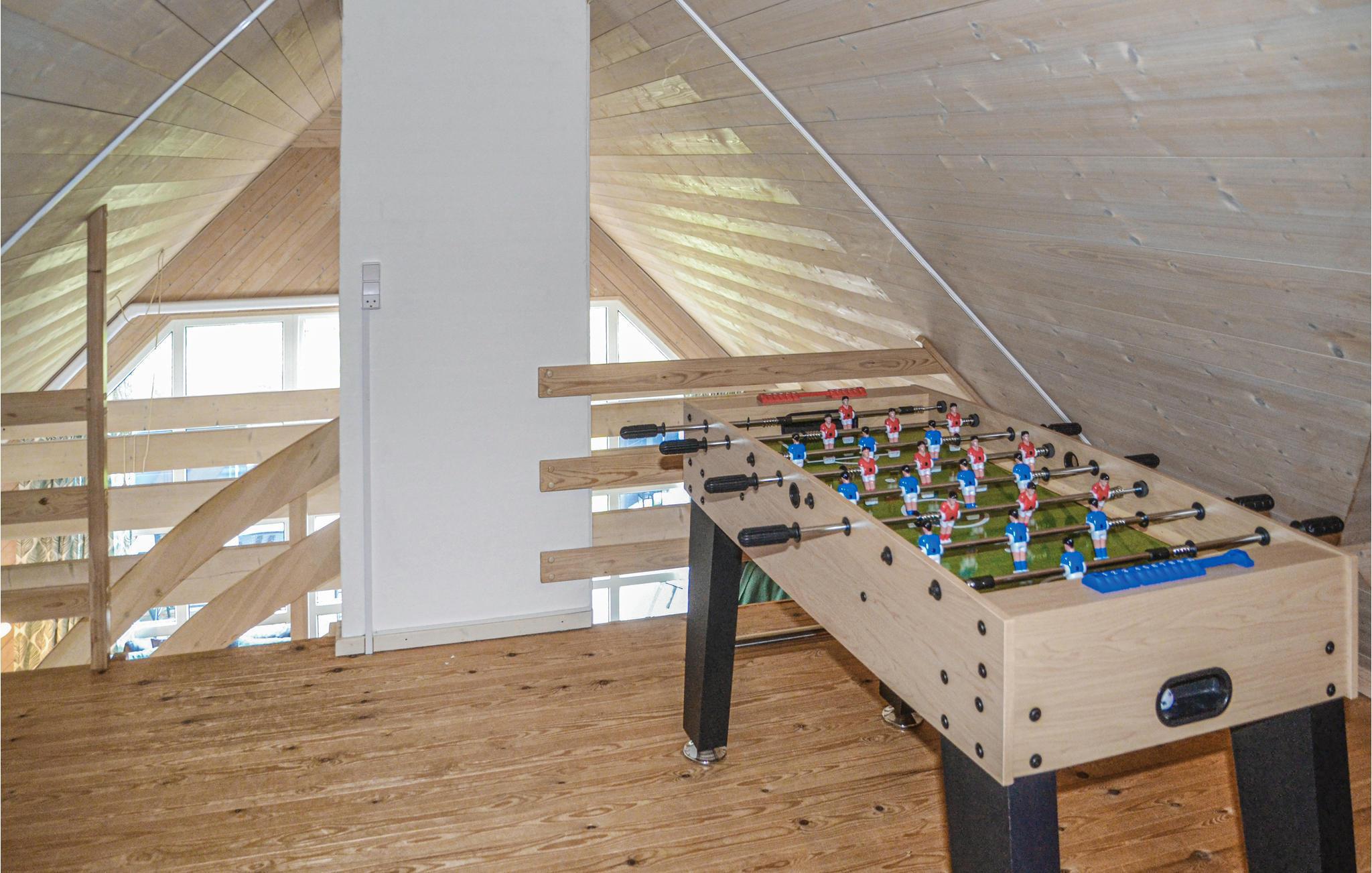 Huset er i to etager, rummeligt og meget velindrettet. Feriehuset har to badeværelser med gulvvarme, og i det store badeværelse findes et standvandsspa samt adgang til sauna. Med alle de faciliteter der findes i huset, er dagens små gøremål hurtigt overstået, så der er tid til at slappe af eller komme ud i den dejlige natur, der er lige uden for døren. På 1. salen, hvor det ene af de fire soveværelser befinder sig, står et bordfodboldspil, hvor I kan dyste mod hinanden.