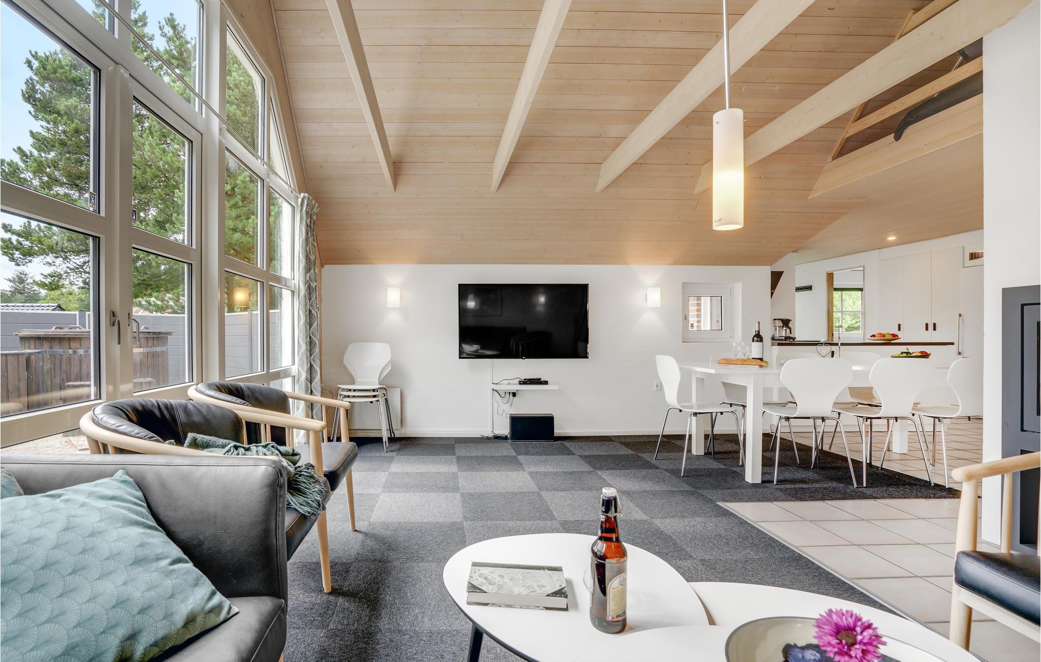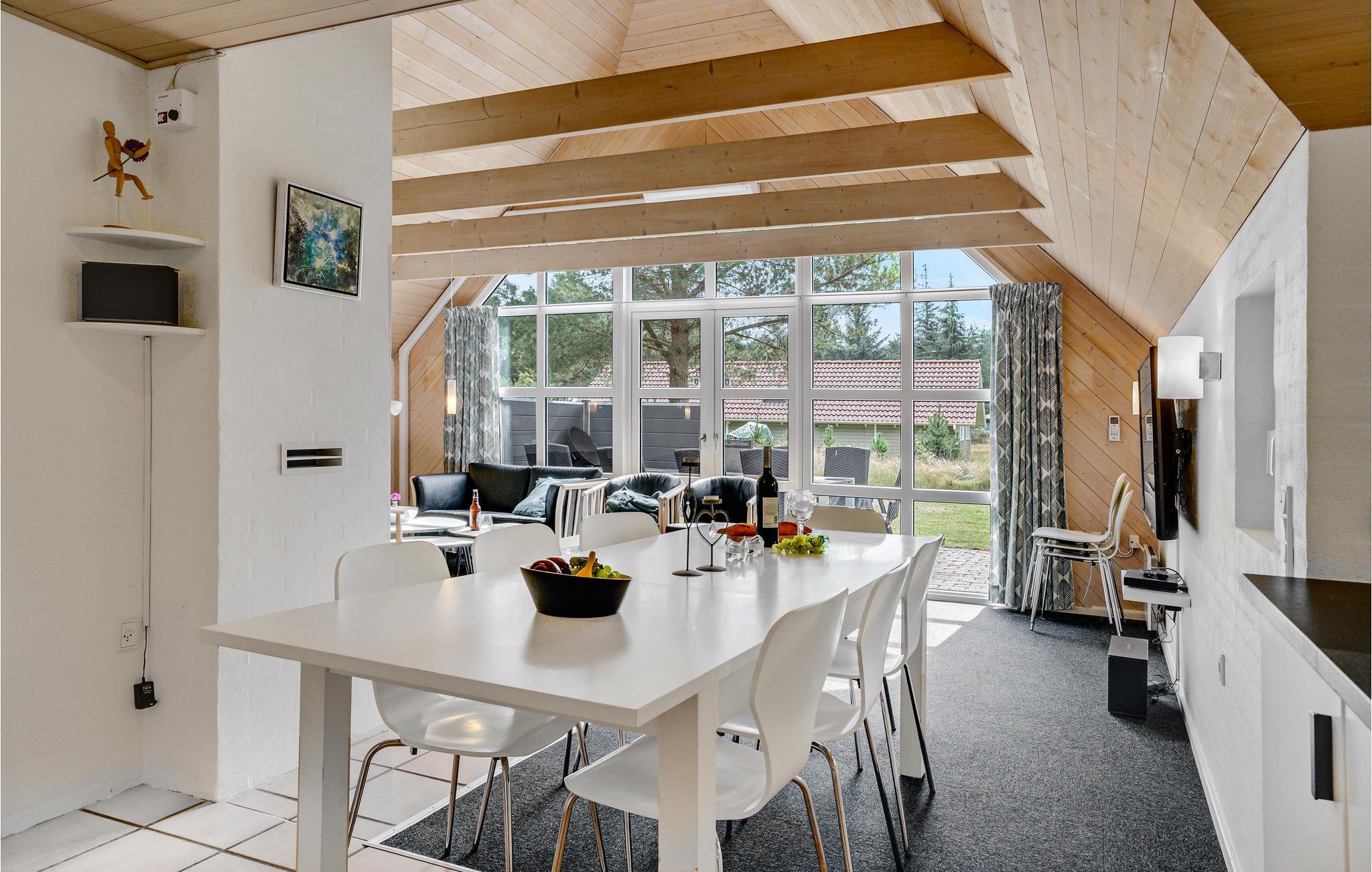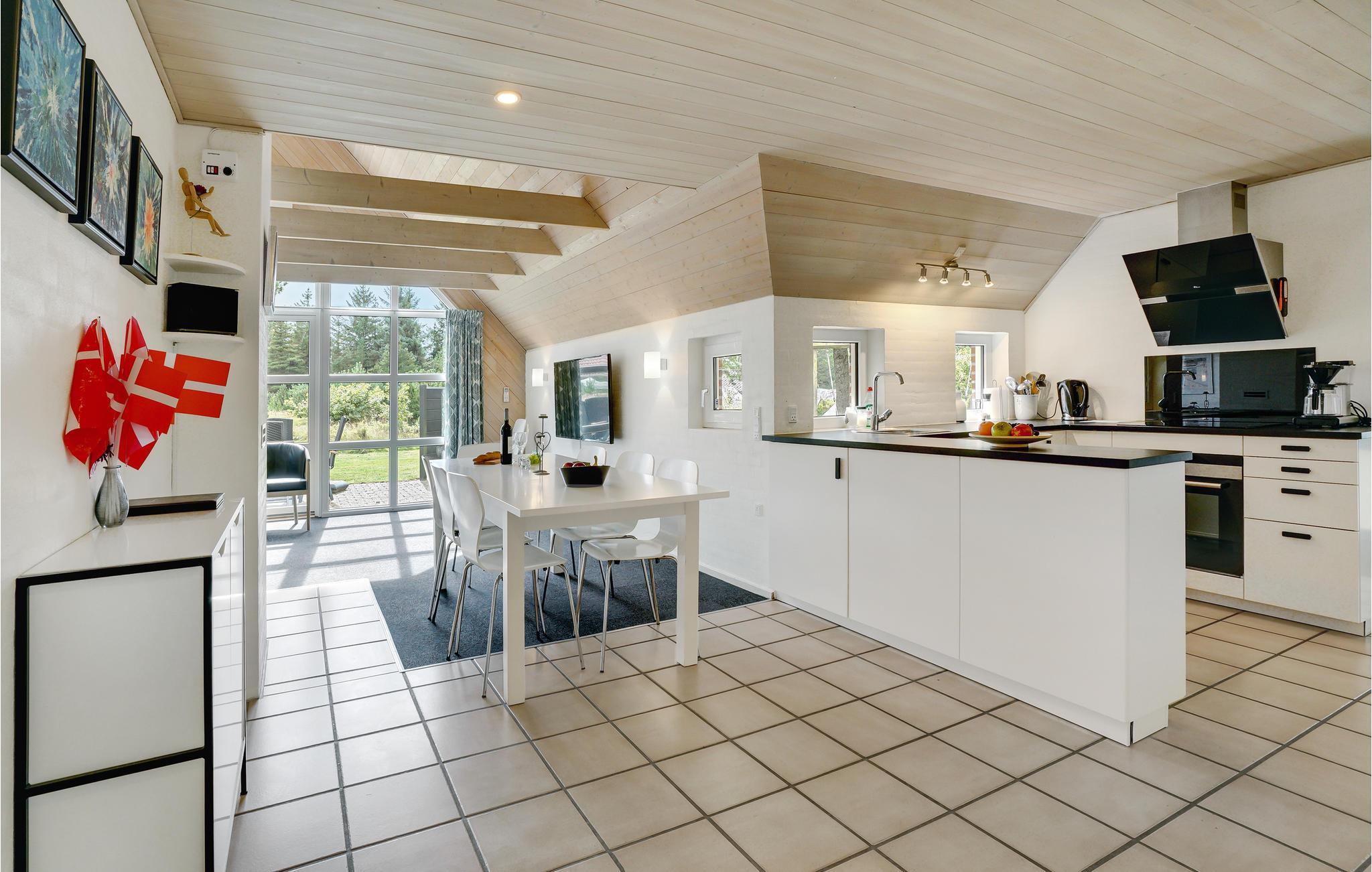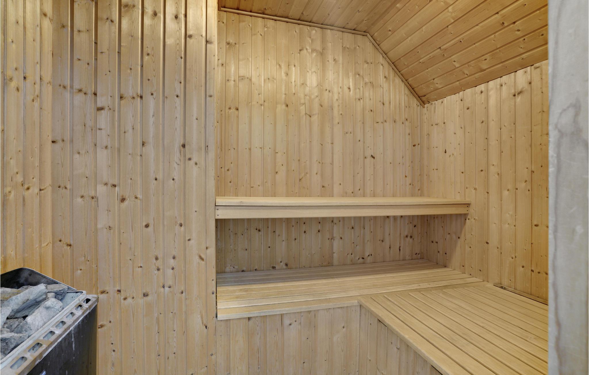 Huset er i to etager, rummeligt og meget velindrettet. Feriehuset har to badeværelser med gulvvarme, og i det store badeværelse findes et standvandsspa samt adgang til sauna. Med alle de faciliteter der findes i huset, er dagens små gøremål hurtigt overstået, så der er tid til at slappe af eller komme ud i den dejlige natur, der er lige uden for døren. På 1. salen, hvor det ene af de fire soveværelser befinder sig, står et bordfodboldspil, hvor I kan dyste mod hinanden.