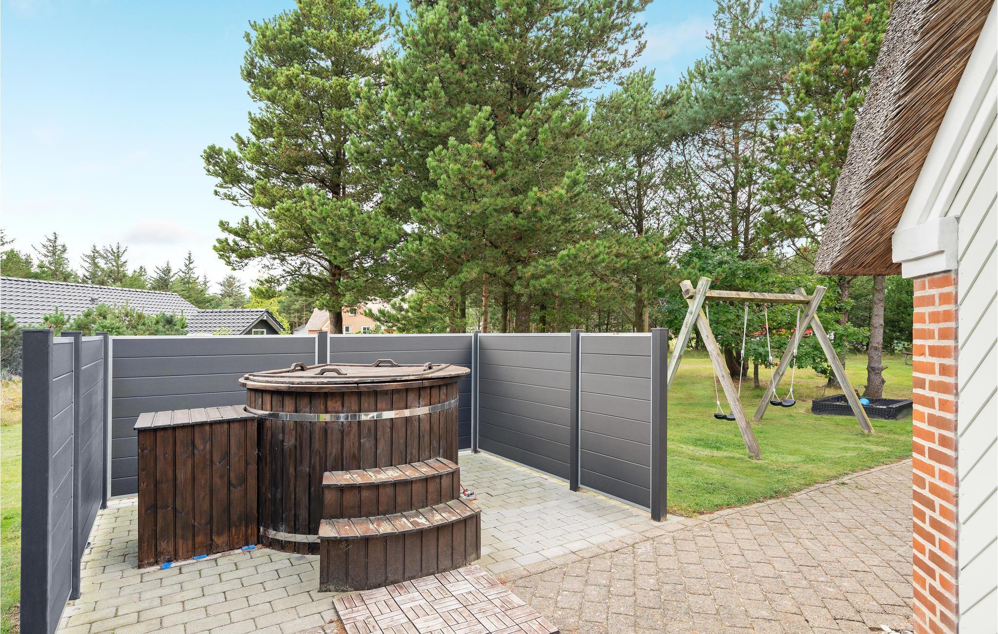 På grunden er der mulighed for at spille basketball og petanque. Huset er omgivet af flere gode og læfulde terrasser med dejlige havemøbler. Feriehuset ligger lige op til en større klitplantage, og det tager ikke lang tid at komme til stranden eller den meget kendte klitplantage Blåbjerg. Der er desuden mulighed for ridning på islandske heste tæt ved huset.