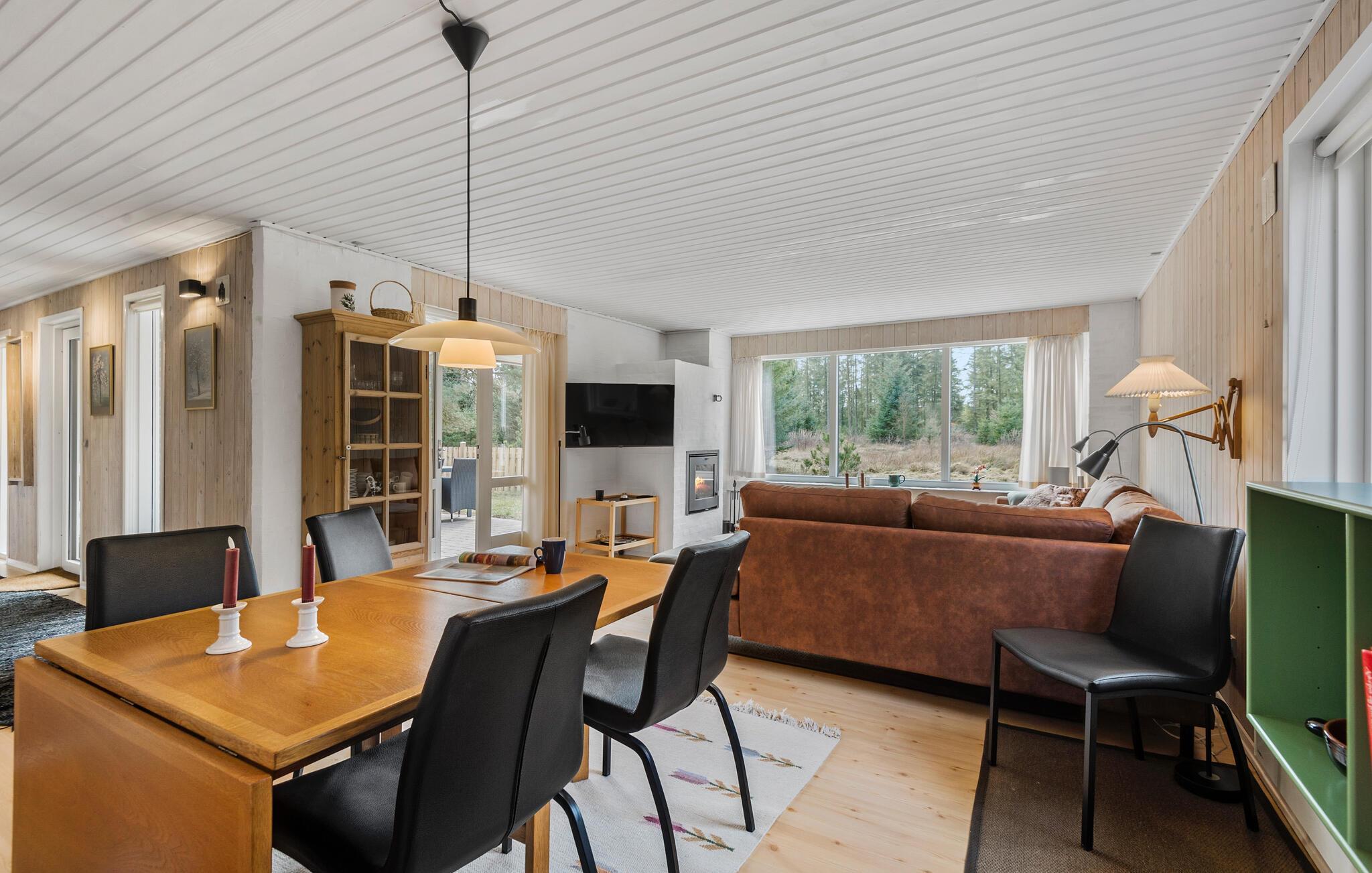 I kan se frem til nogle fredfyldte dage i naturskønne omgivelser på den jyske vestkyst. I husets åbne opholdsrum kan I læne jer tilbage efter dagens program. Det store sofaområde med udsigt til det grønne lægger op til ren afslapning med gode bøger eller en serie i fjernsynet. Tilbered dagens måltider sammen i det lyse, åbne køkken. Dæk op til middagen i en hyggelig atmosfære ved spisebordet og rund måske dagen af med en stille stund i saunaen, hvor varmen gør noget godt for de ømme muskler oven på nogle lange gåture i klitterne.