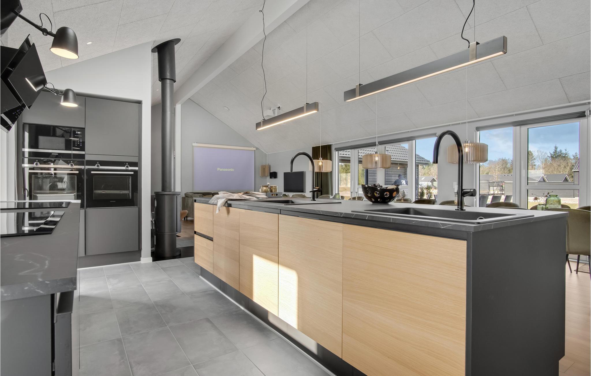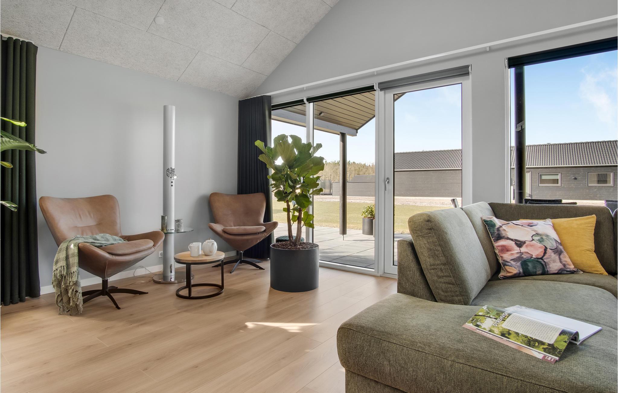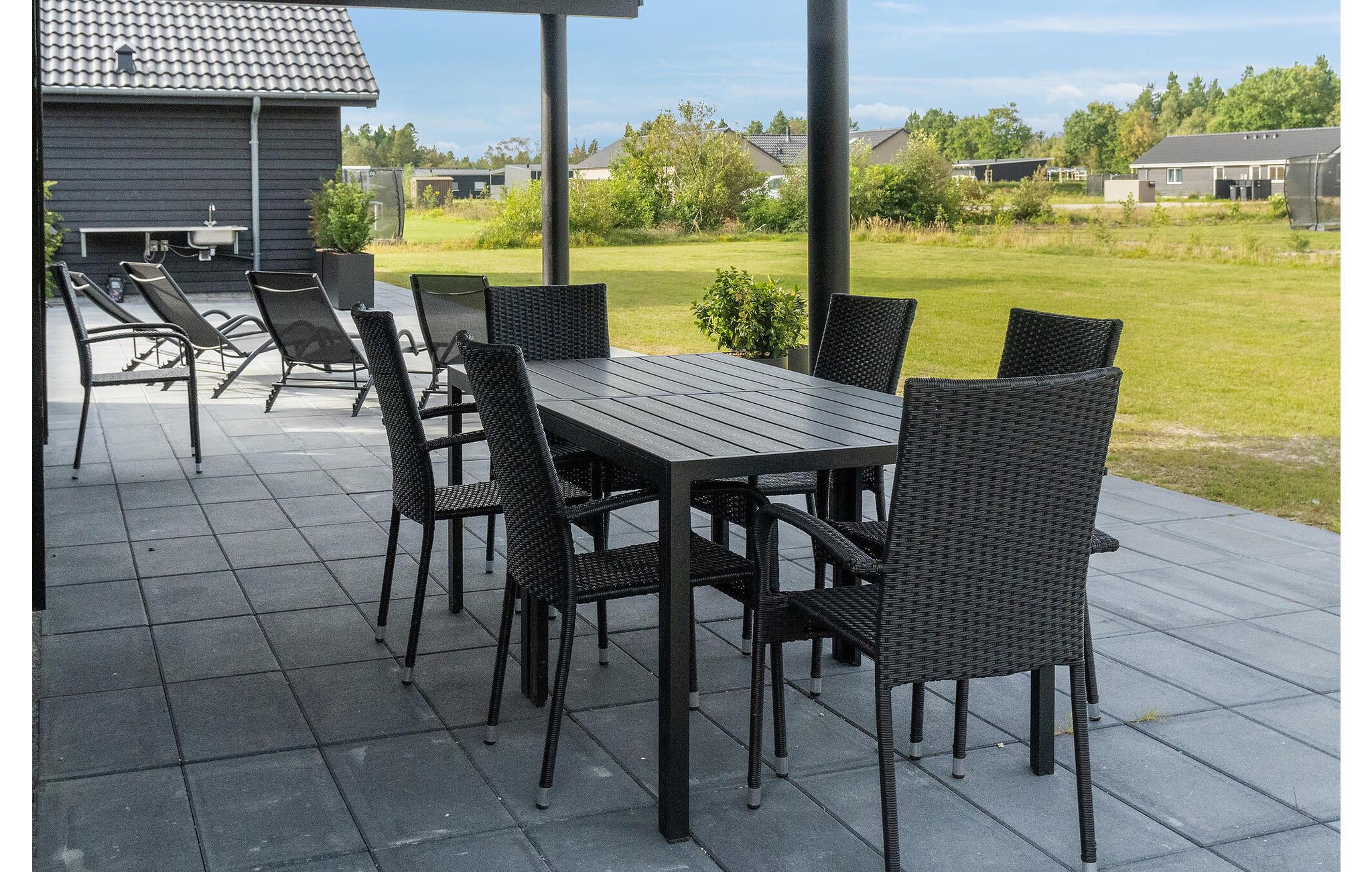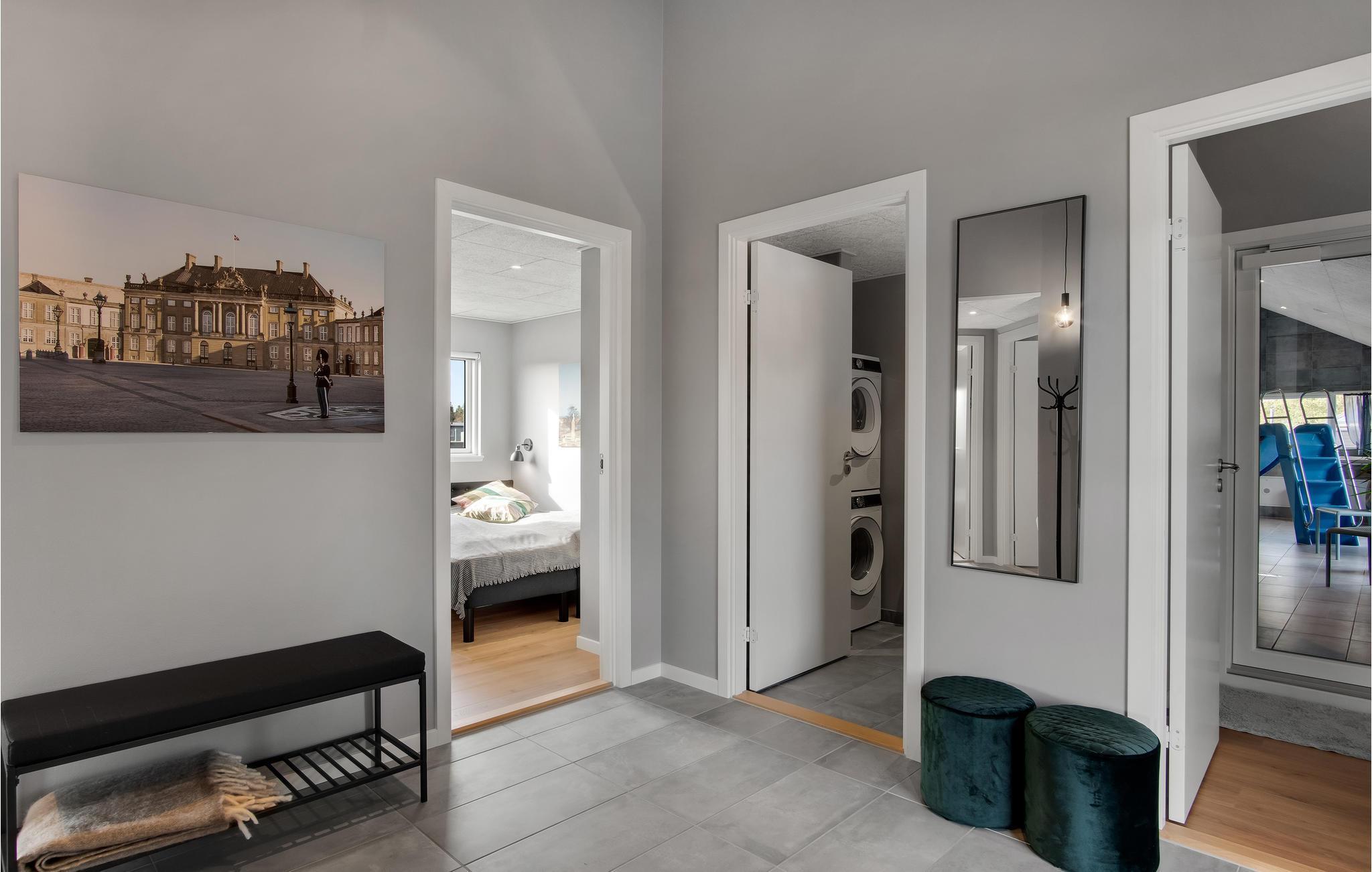 Dette skønne feriehus med plads til flere familier ligger i Houstrup, ikke langt fra Vesterhavet. Her får I faciliteter af høj kvalitet og et stort udvalg af aktiviteter for store og små. I løbet af dagen kan I more jer med at spille billard eller bordtennis og af og til nyde en kold forfriskning i baren. Poolafdelingen inviterer til timevis af badesjov og byder også på muligheder for wellness i spabad og sauna. Om aftenen, efter en begivenhedsrig dag, kan I sammen tilberede lækre måltider i det rummelige, moderne køkken og nyde dem i godt selskab ved spisebordet. Den store terrasse byder på både solrige og skyggefulde hjørner, så I kan nyde sommervejret fuldt ud. Lad børnene hygge sig på trampolinen eller i legetårnet, mens I forbereder en lækker grillmiddag til hele selskabet.