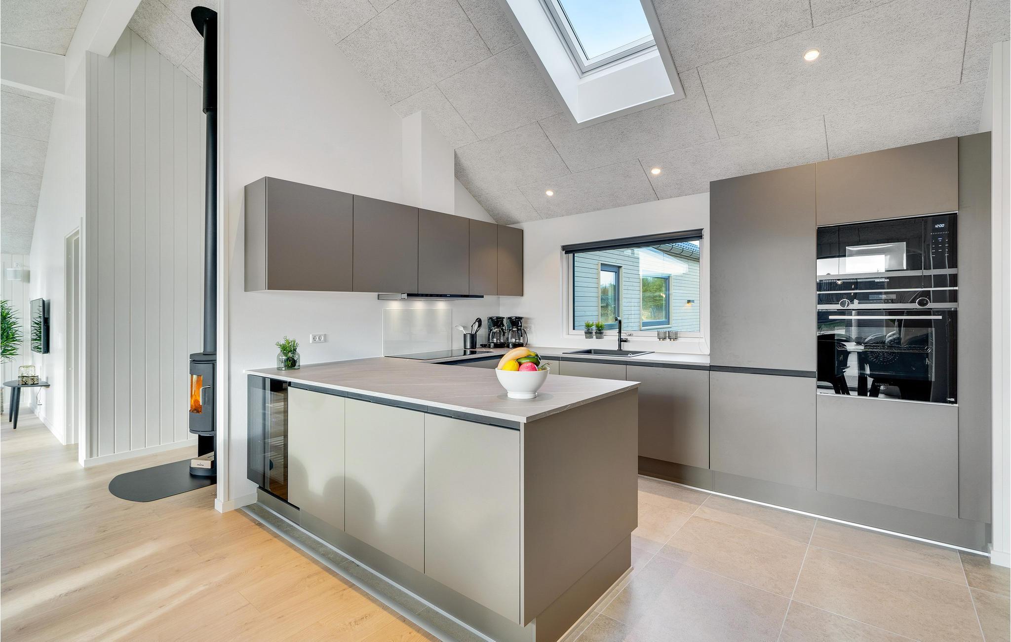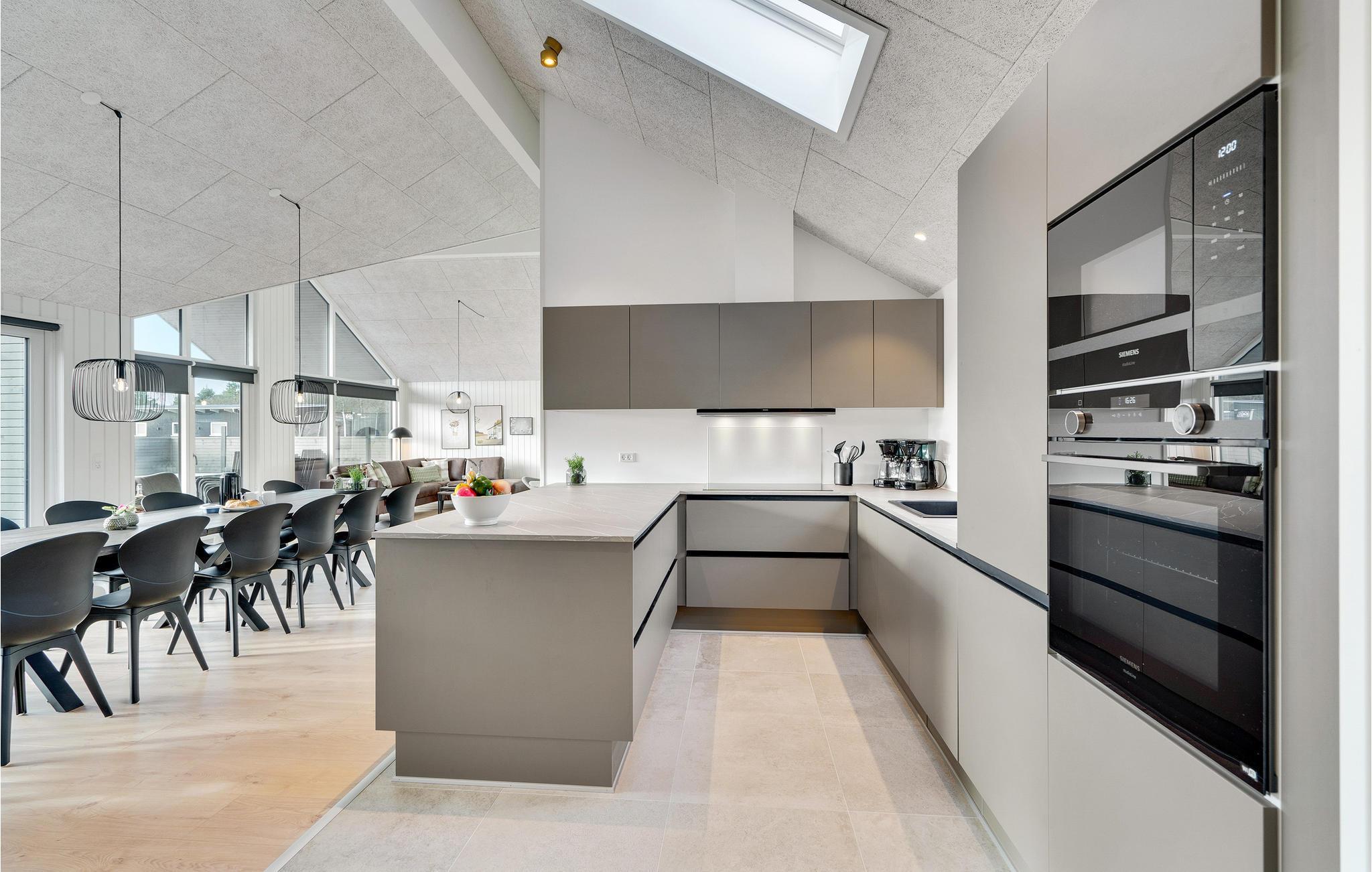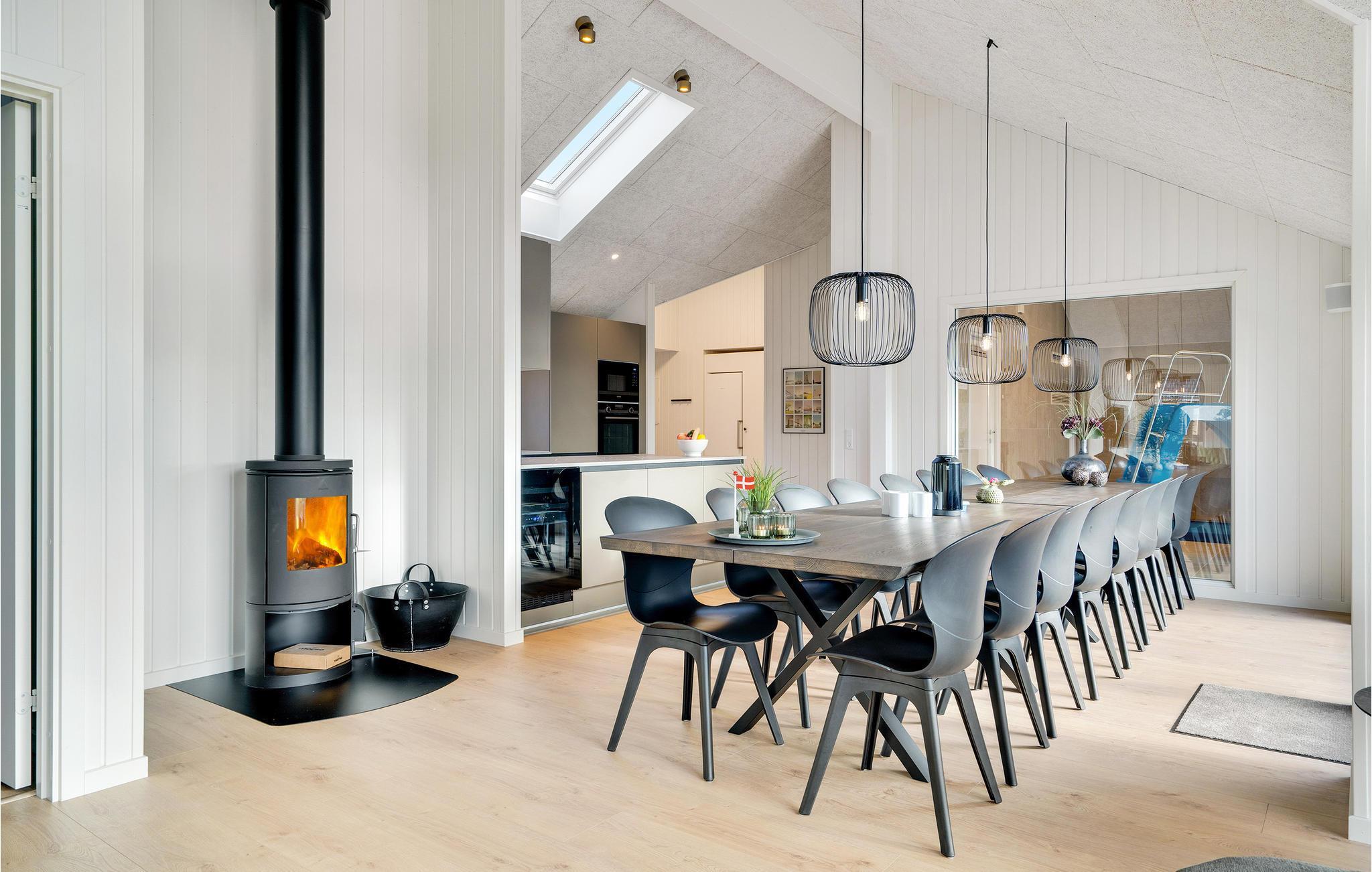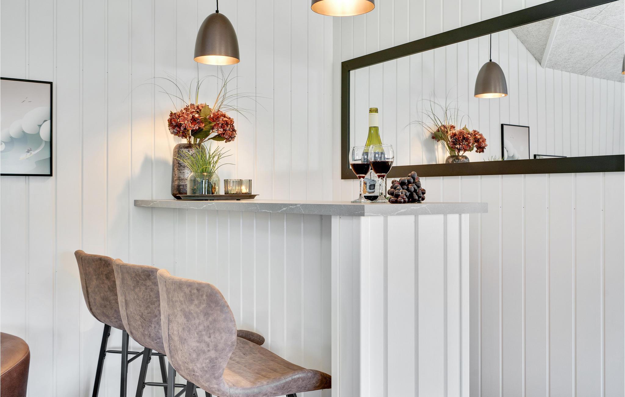 I Houstrup, ikke langt fra Vesterhavet, finder I dette fantastiske feriehus med hyggelig og indbydende indretning. Huset emmer af høj kvalitet, og har et lyst interiør og mange komfortable og familievenlige faciliteter. I aktivitetsrummet kan I udfordre hinanden til et spil bordtennis eller bordfodbold og imens nyde en kold forfriskning i baren. Den smukke saltvandspool med vandrutsjebane inviterer store og små til mange hyggelige timer. Husets hjerte er den skønne opholdsstue med åbent køkken og plads til fælles madlavning. Nyd lækre måltider i godt selskab ved det store spisebord og hyg jer bagefter med brætspil eller sæt jer godt til rette foran brændeovnen.