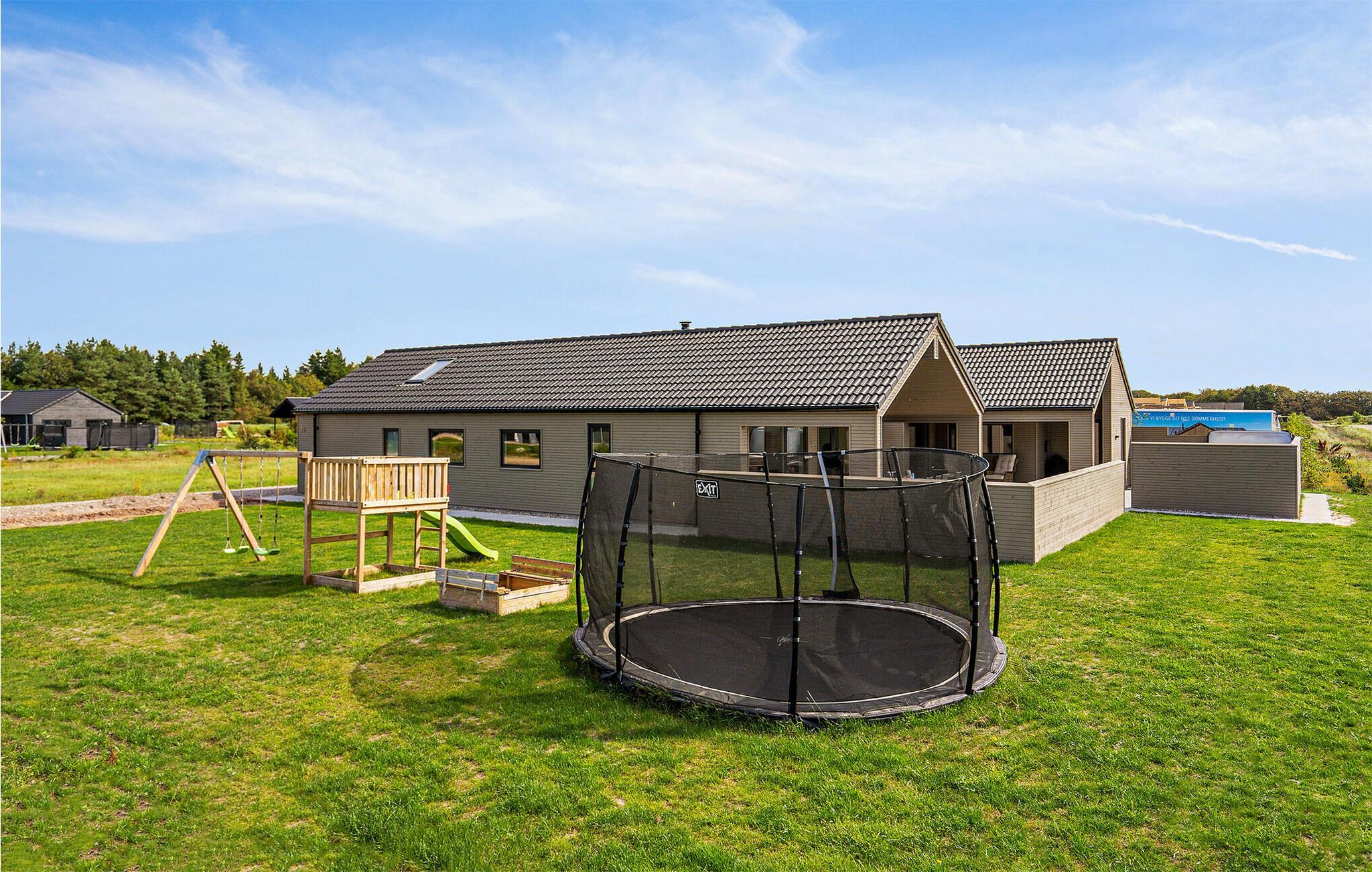 Rummeligt feriehus i Houstrup med indendørs pool, jacuzzi og aktivitetsrum tæt på Vesterhavet.