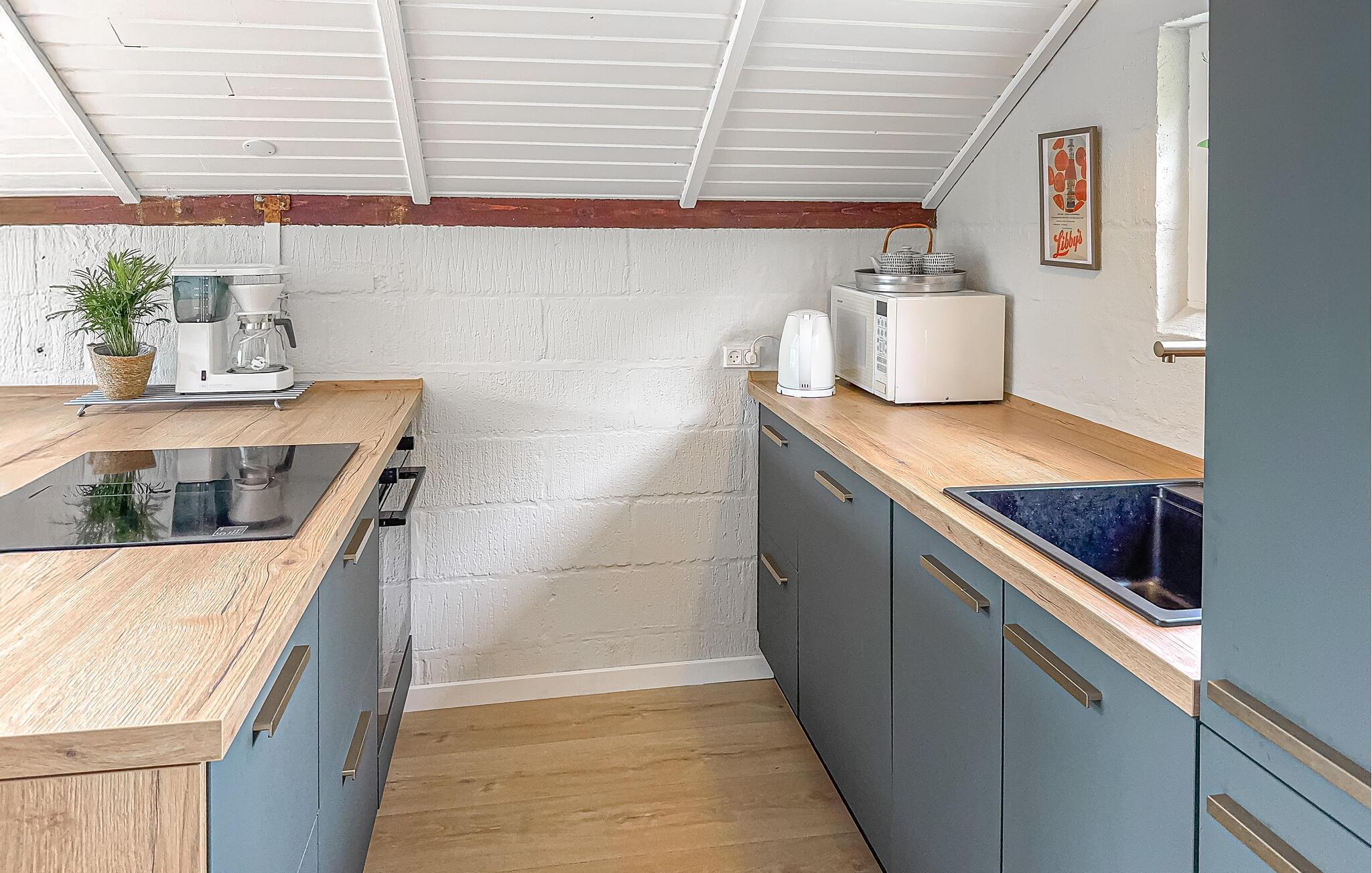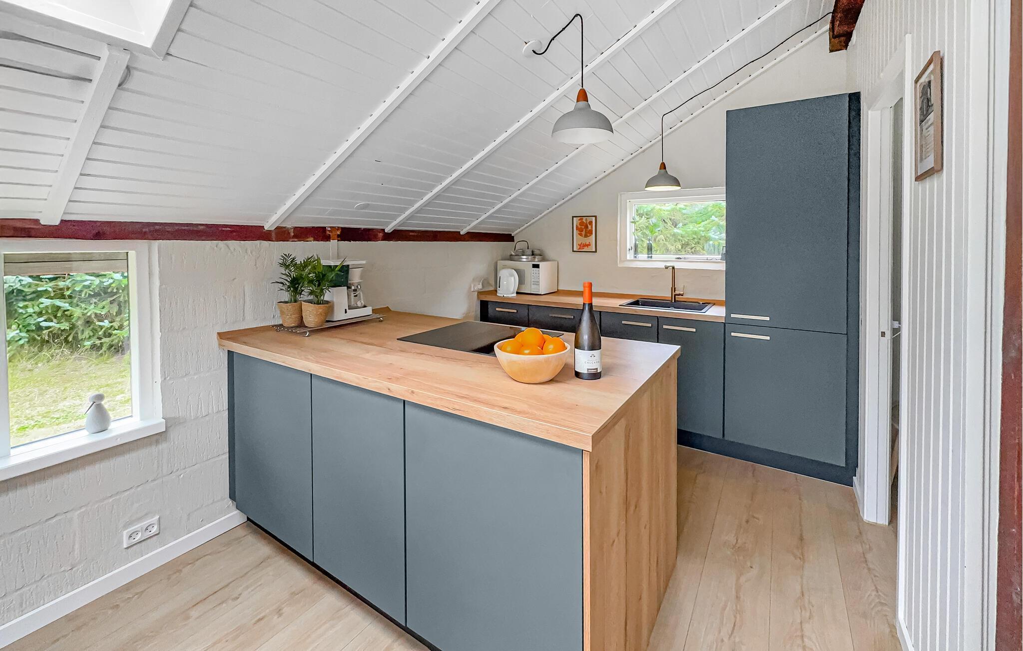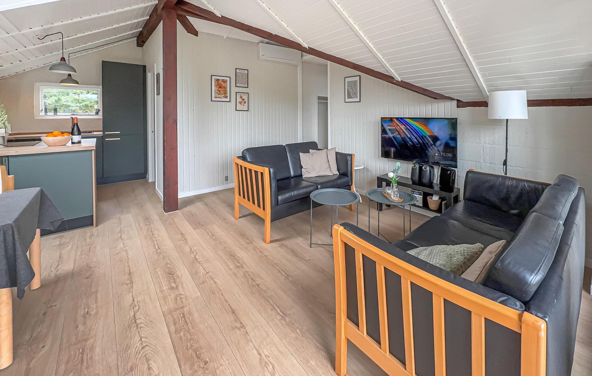 Dette idyllisk beliggende hus har en indbydende atmosfære: et smukt trælook, komfortable sofaer og et moderne køkken sikrer, at I hurtigt kan slappe af og lade batterierne op. Lyt til god musik, stream en spændende serie eller lav et lækkert måltid sammen i køkkenet. Og når aftenerne bliver kølige, tænd op i brændeovnen for hyggelig varme.