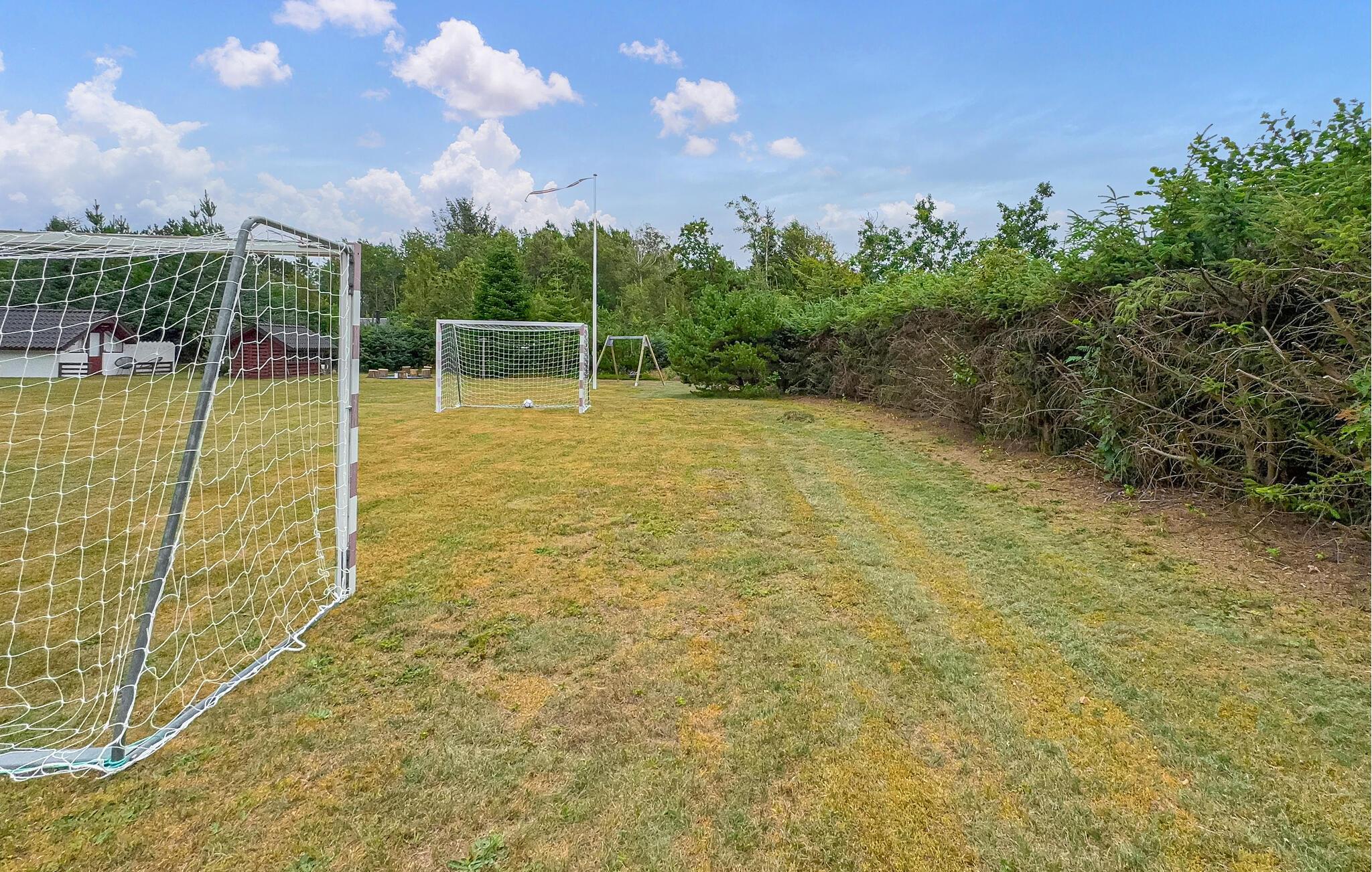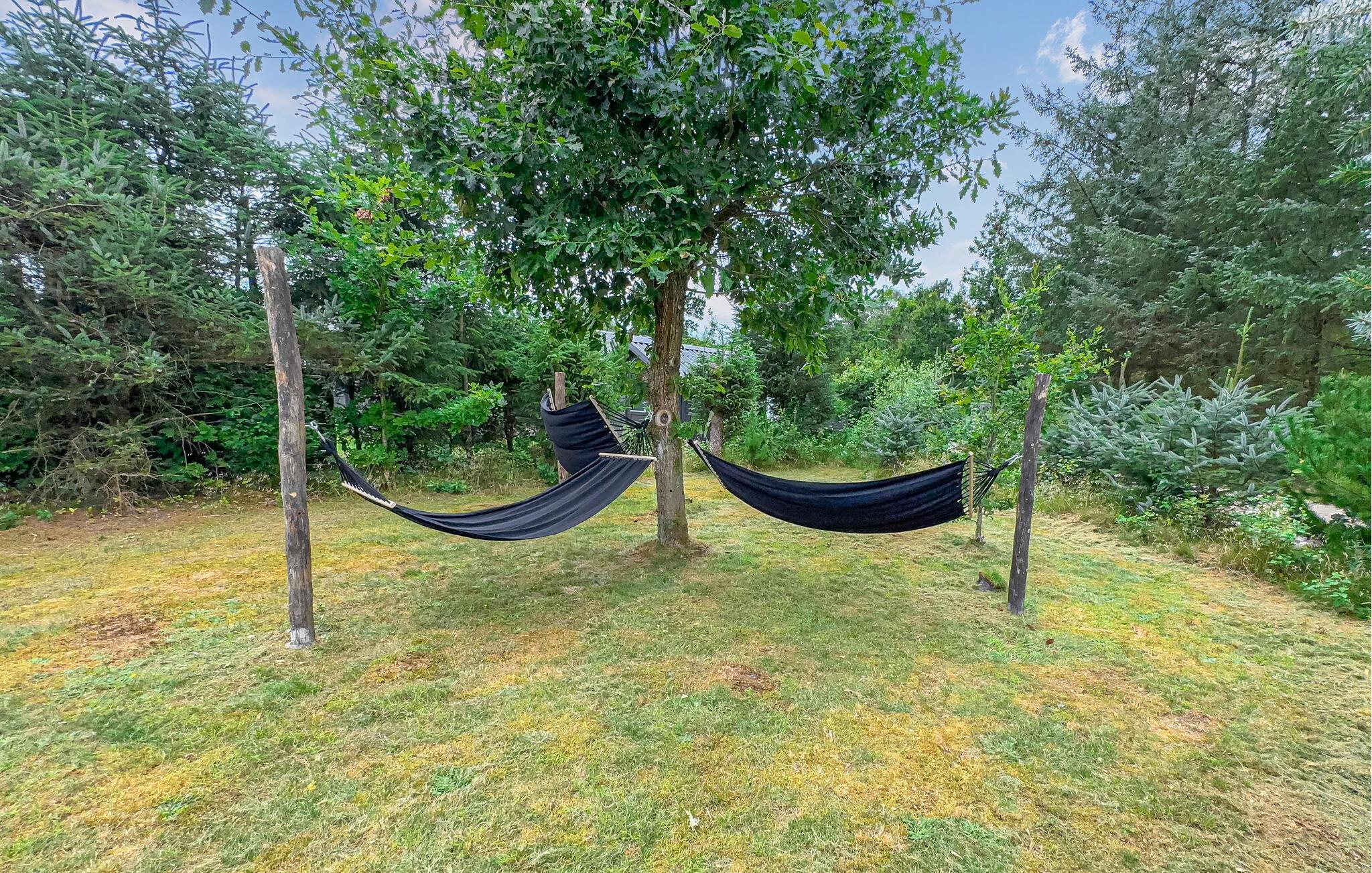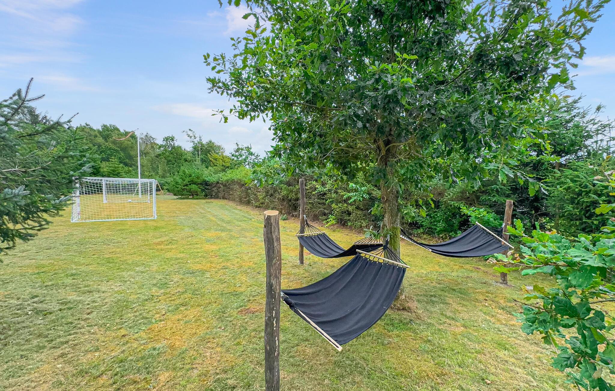 Træd ud i den smukke have om morgenen og nyd naturens ro. Nyd en solid morgenmad på træterrassen og slap derefter af, mens I gynger behageligt i hængekøjerne. De, der kan lide sport, kan spille fodbold. Om aftenen inviterer bålstedet jer til at bage snobrød under åben himmel.