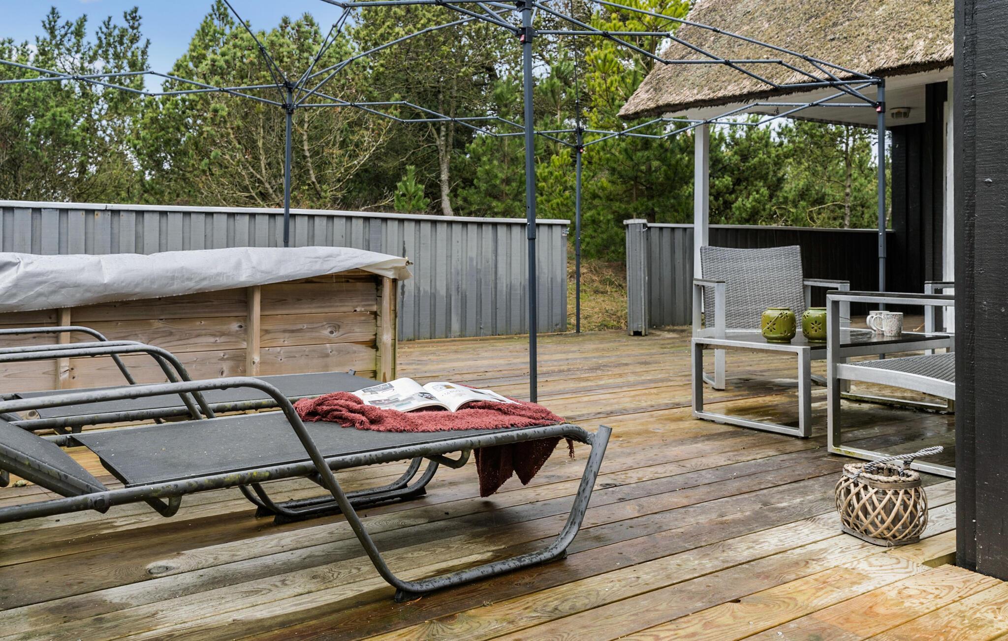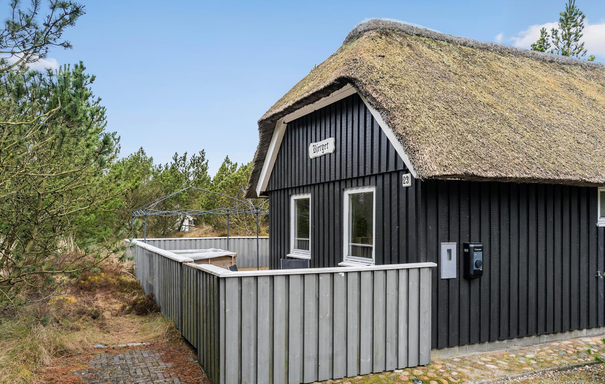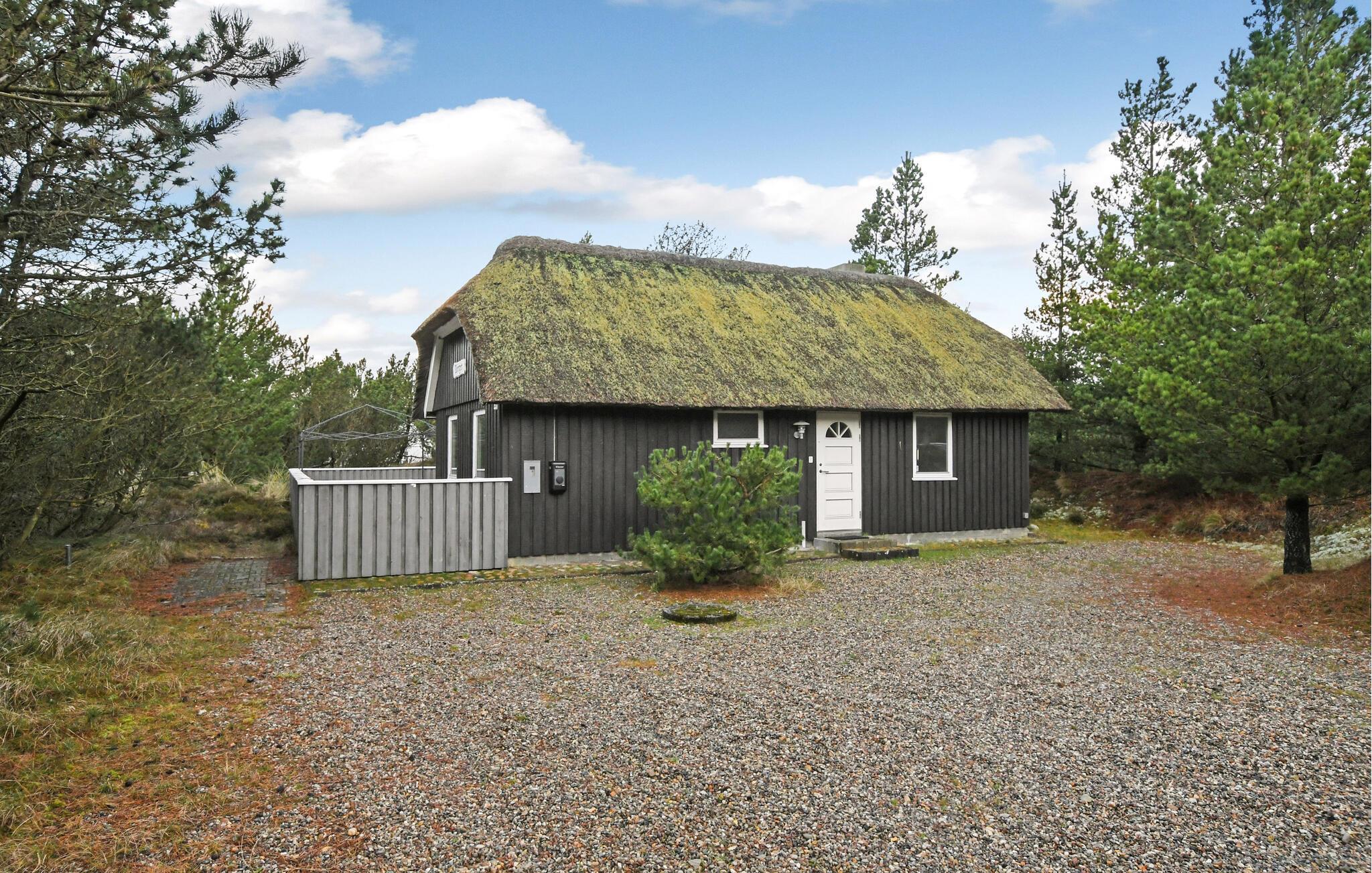 Hyggeligt sommerhus i Houstrup med naturgrund, terrasse og tæt på Vesterhavets strande.