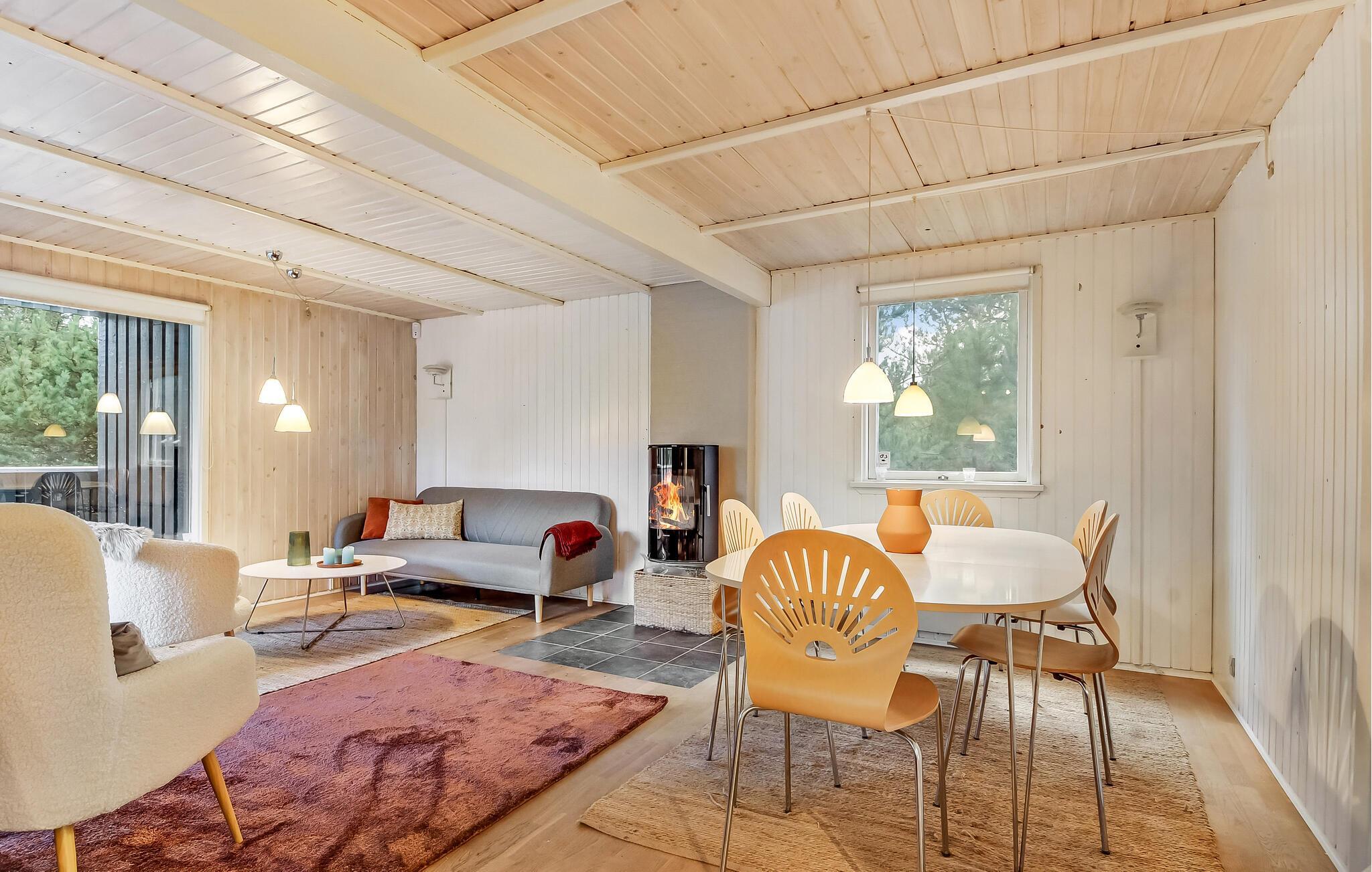 Velkommen til jeres hyggelige sommerhus i Houstrup, som giver jer en ideel pause midt i et idyllisk naturlandskab. Kun en kort køretur i bil eller på cykel adskiller jer fra Jyllands ikoniske vestkyst. Den hyggelige opholdsstue lægger op til afslappende timer om aftenen efter forfriskende udflugter, det være sig med en spændende bog eller et hyggeligt samvær ved den varme brændeovn. Der er plads nok i det praktiske køkken til at lave mad sammen.