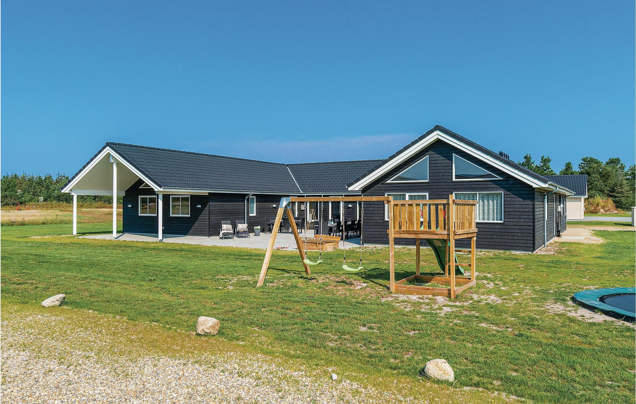 Luksuriøst sommerhus i Houstrup med pool, sauna, spabad, aktivitetsrum og stor naturgrund tæt på stranden.