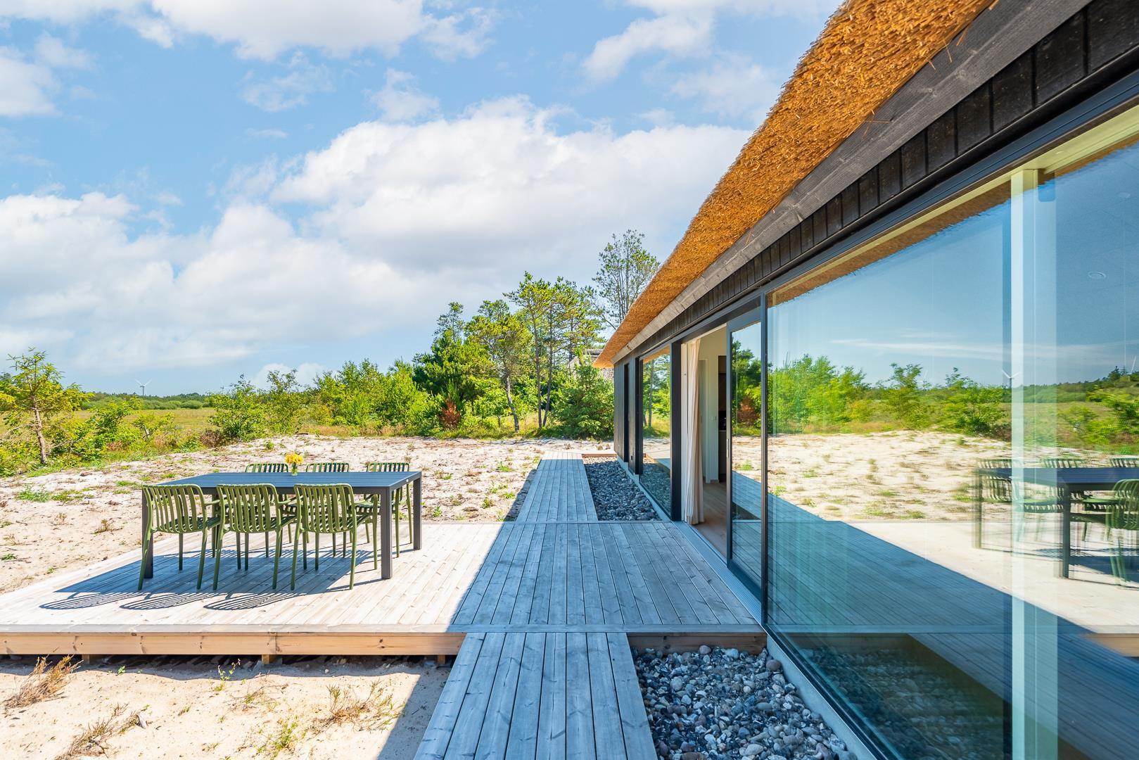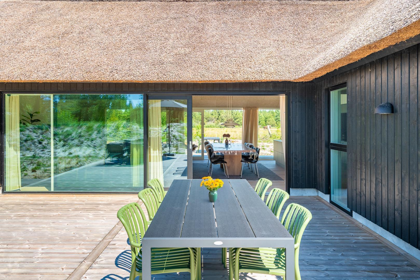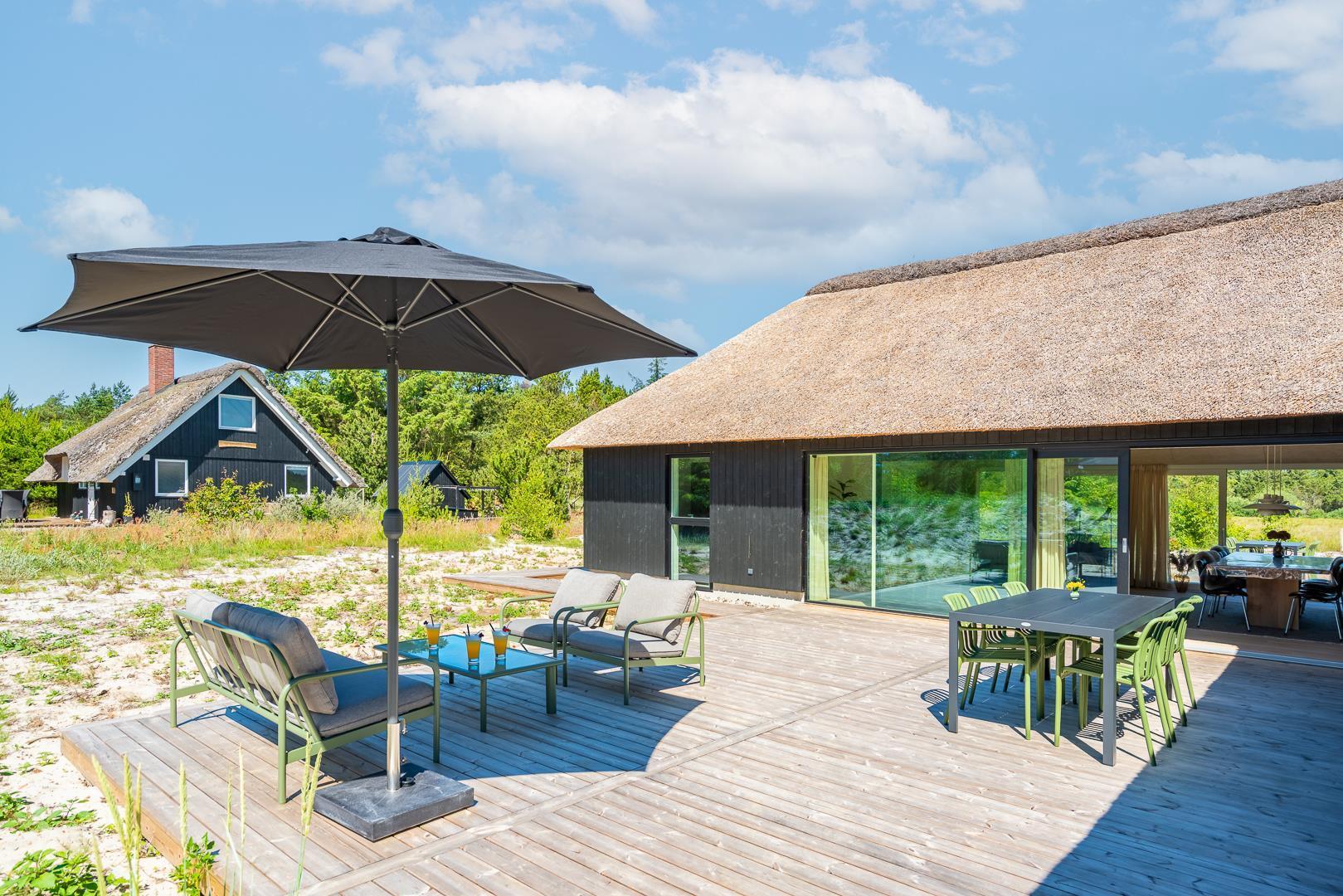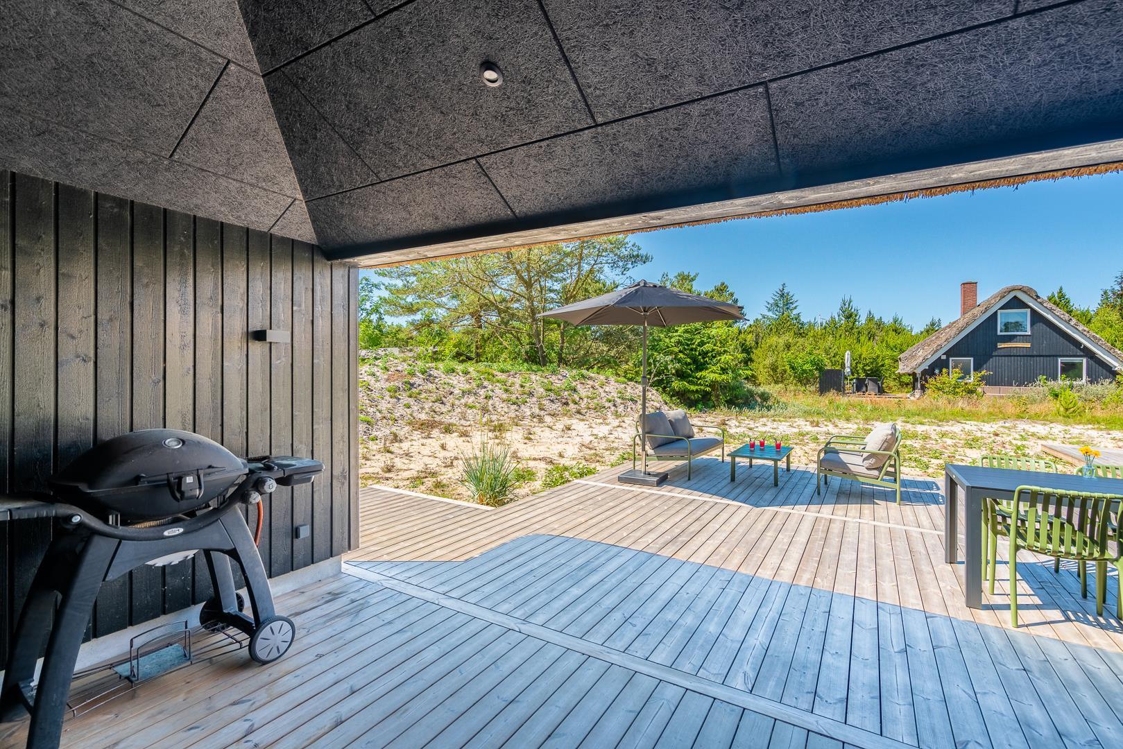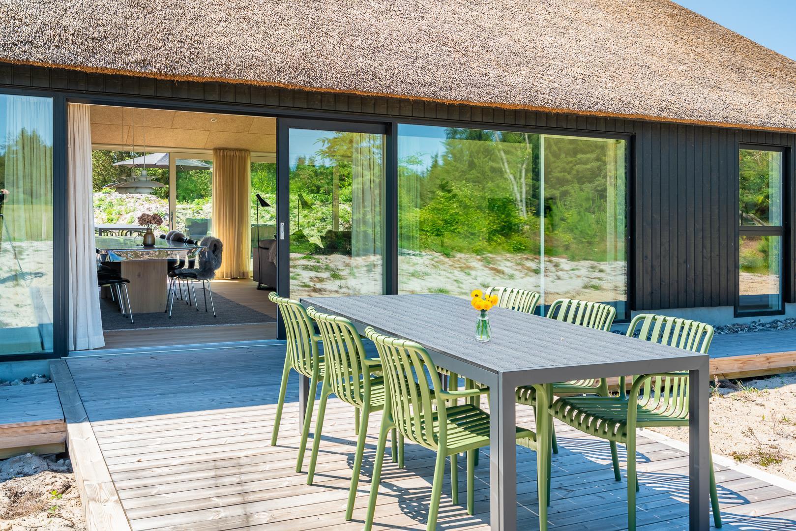 Huset byder på store, skønne træterrasser samt en overdækket terrasse, der smukt omkranser huset og giver mulighed for at nyde udelivet hele dagen — uanset vejr og vind.